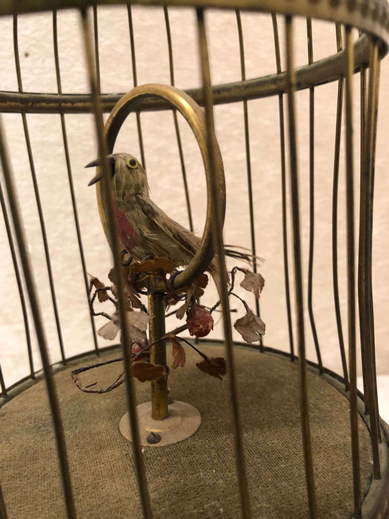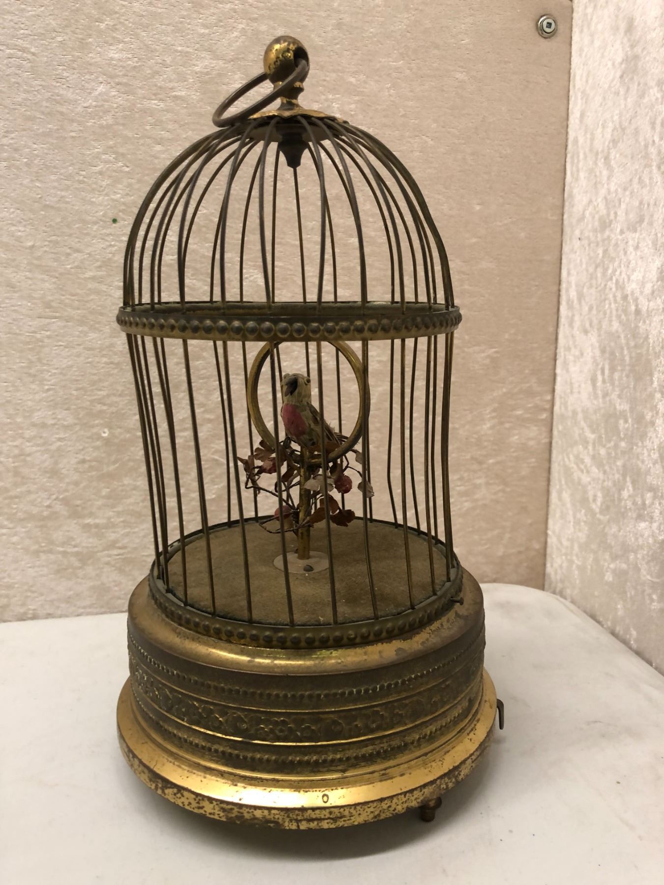 Vintage (1940s - 1950s) German Singing Bird Cage Music Box (Approx. 10" High) - excellent condition, works perfectly - works from clock motor that winds