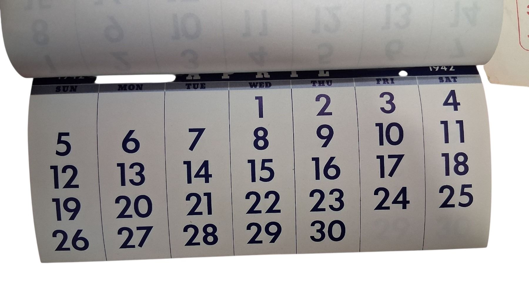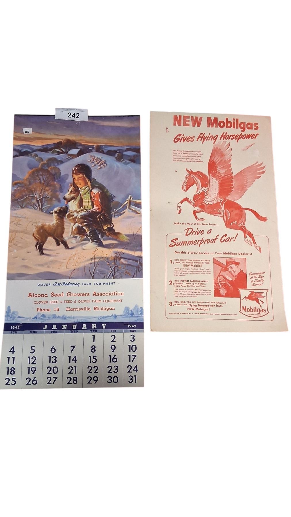 Vintage 1942 calendar & Mobilgas advertisement, 23"x9" cal, 21"x9" ad