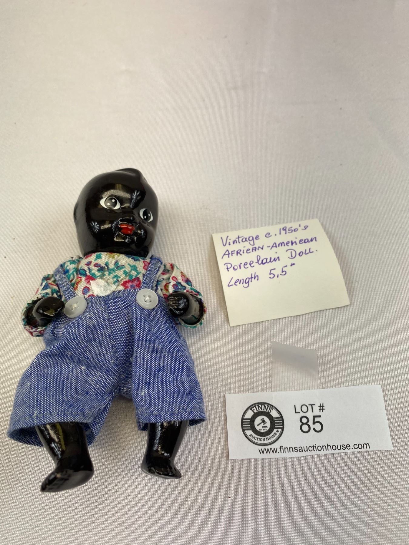 Vintage 1950's African/American Porcelain Doll, 5.5"T, Black Americana