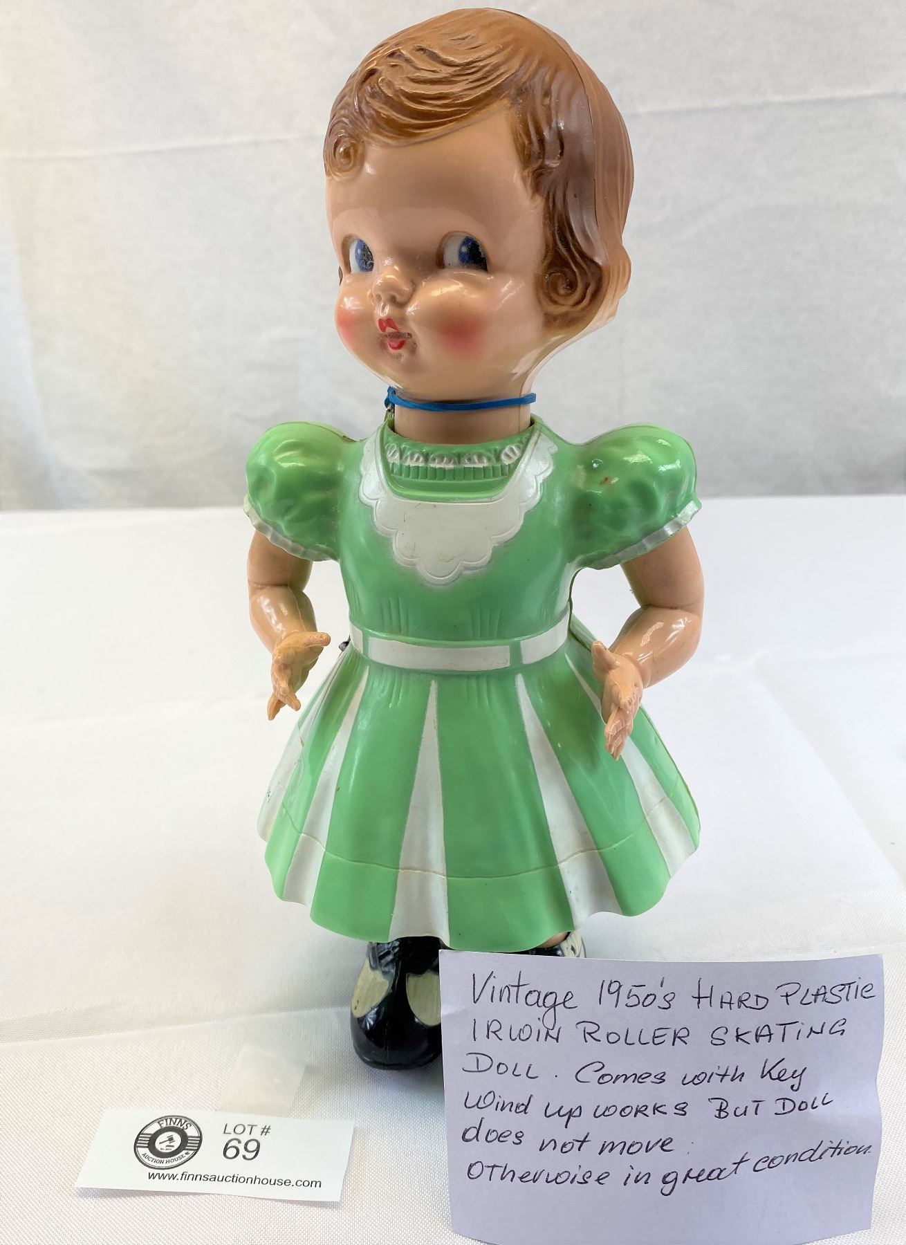 Vintage 1950's Hard Plastic Roller Skating Doll With Key, Wind Up Work, But Doll Doesn’t Move, Otherwise Great Condition