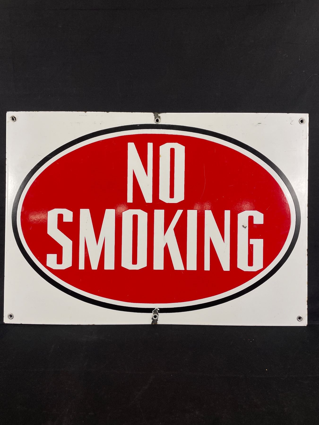 Vintage 1960's Gulf Oil "NO SMOKING" Porcelain Sign. Approx. 20" x 14"
