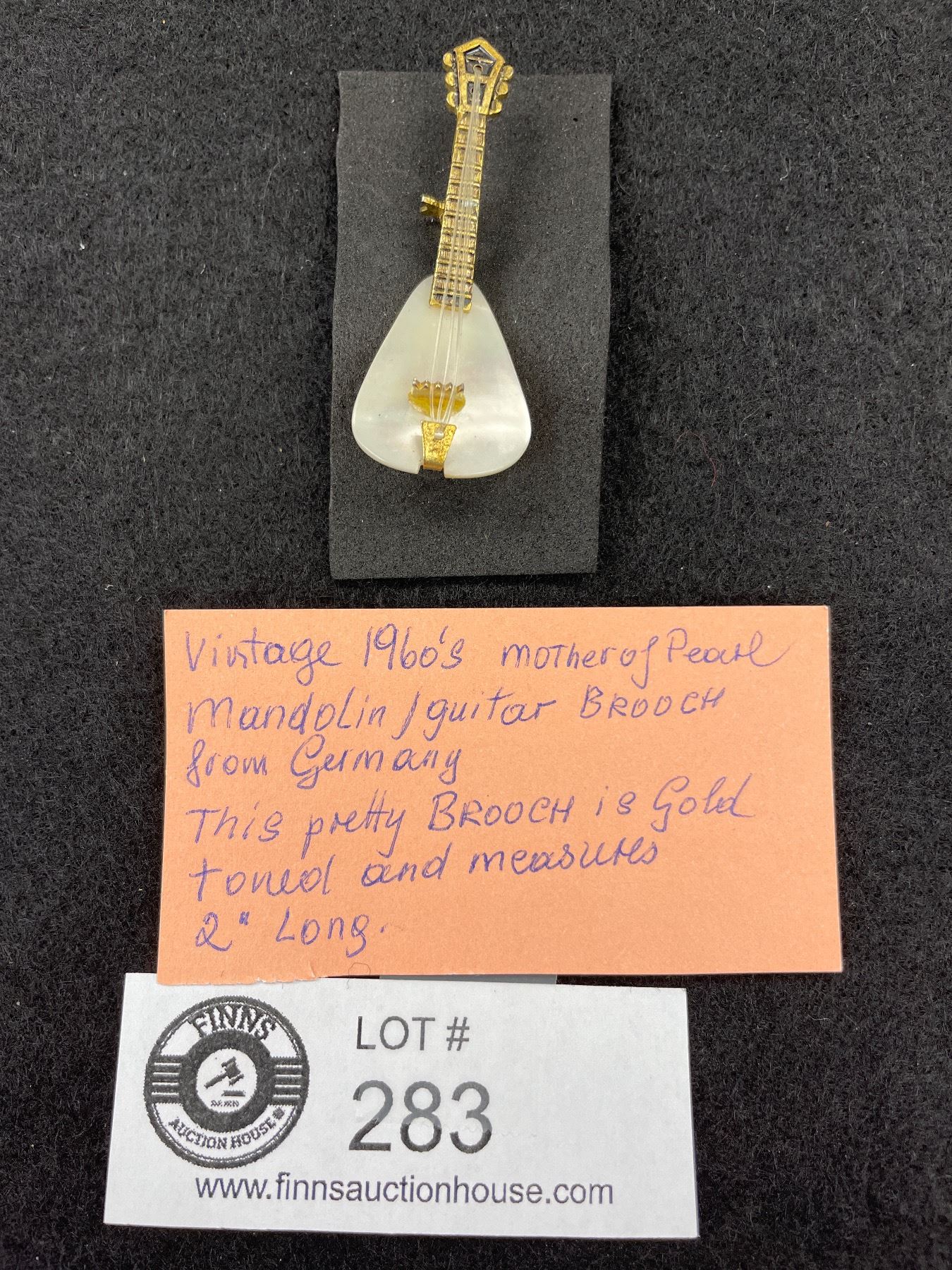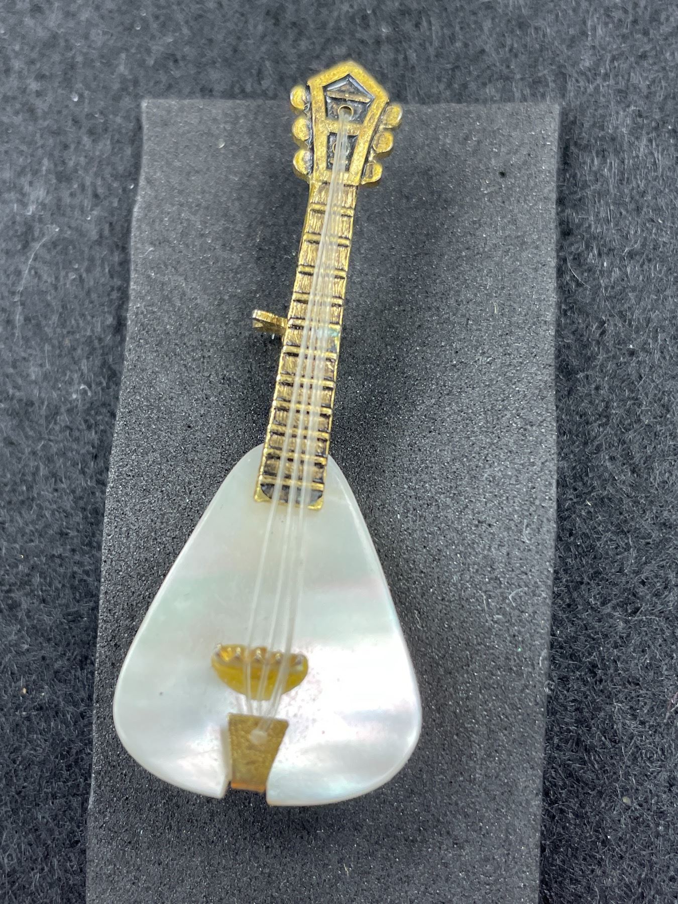 Vintage 1960s Mother of Pearl Mandolin/Guitar Brooch From Germany 2" Long