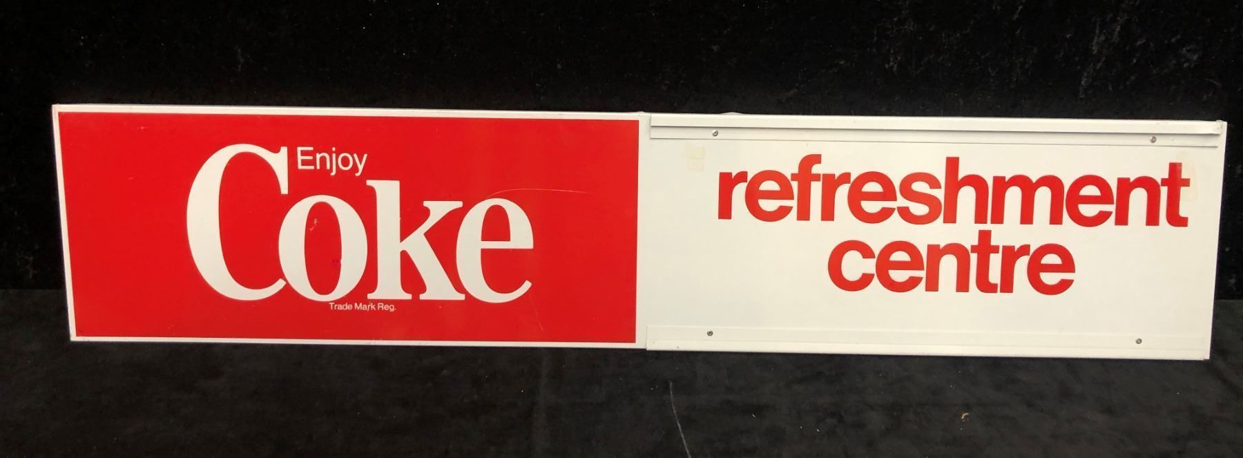 Vintage 1970's/80's Enjoy Coke refreshment center metal advertisement sign 48in x 10in