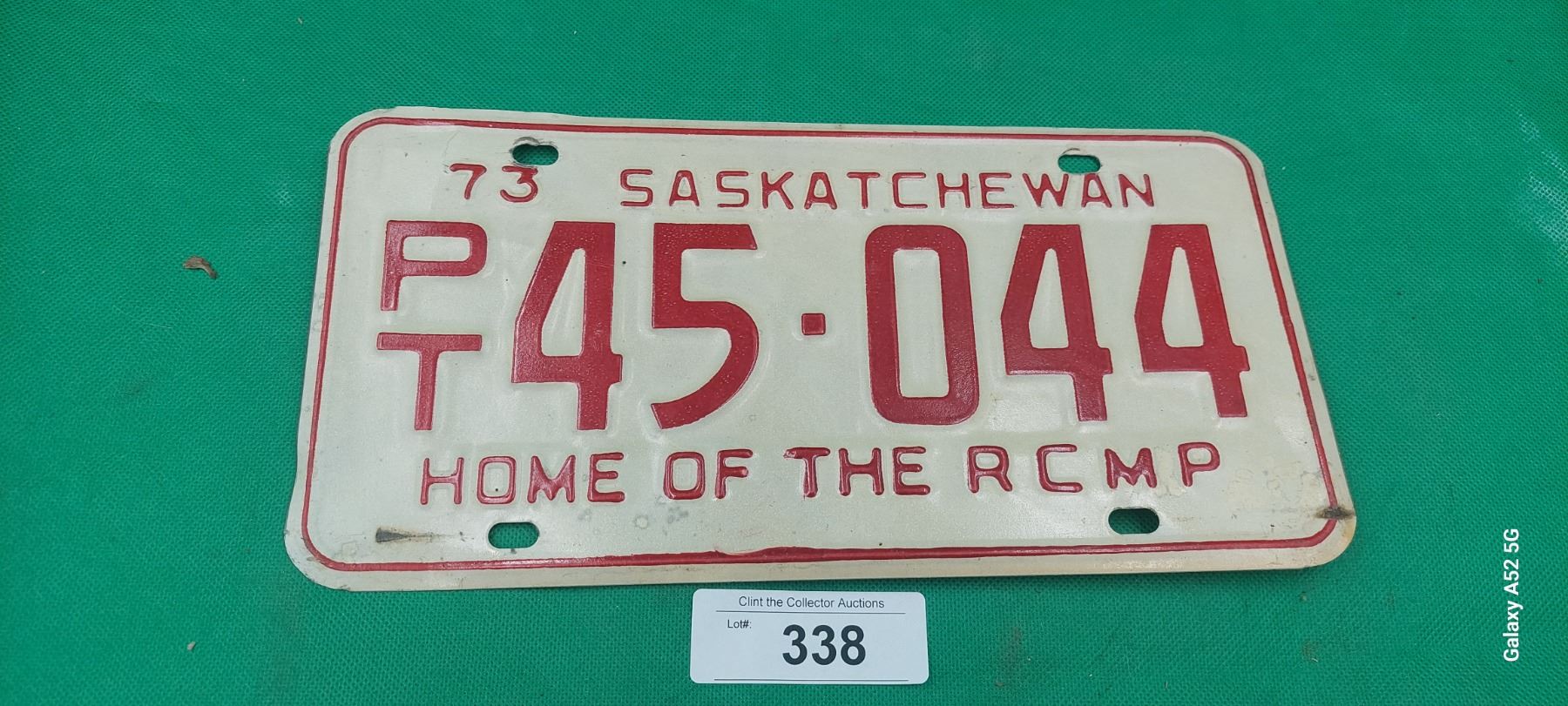 Vintage 1973 Sask license plate "Home of the RCMP"