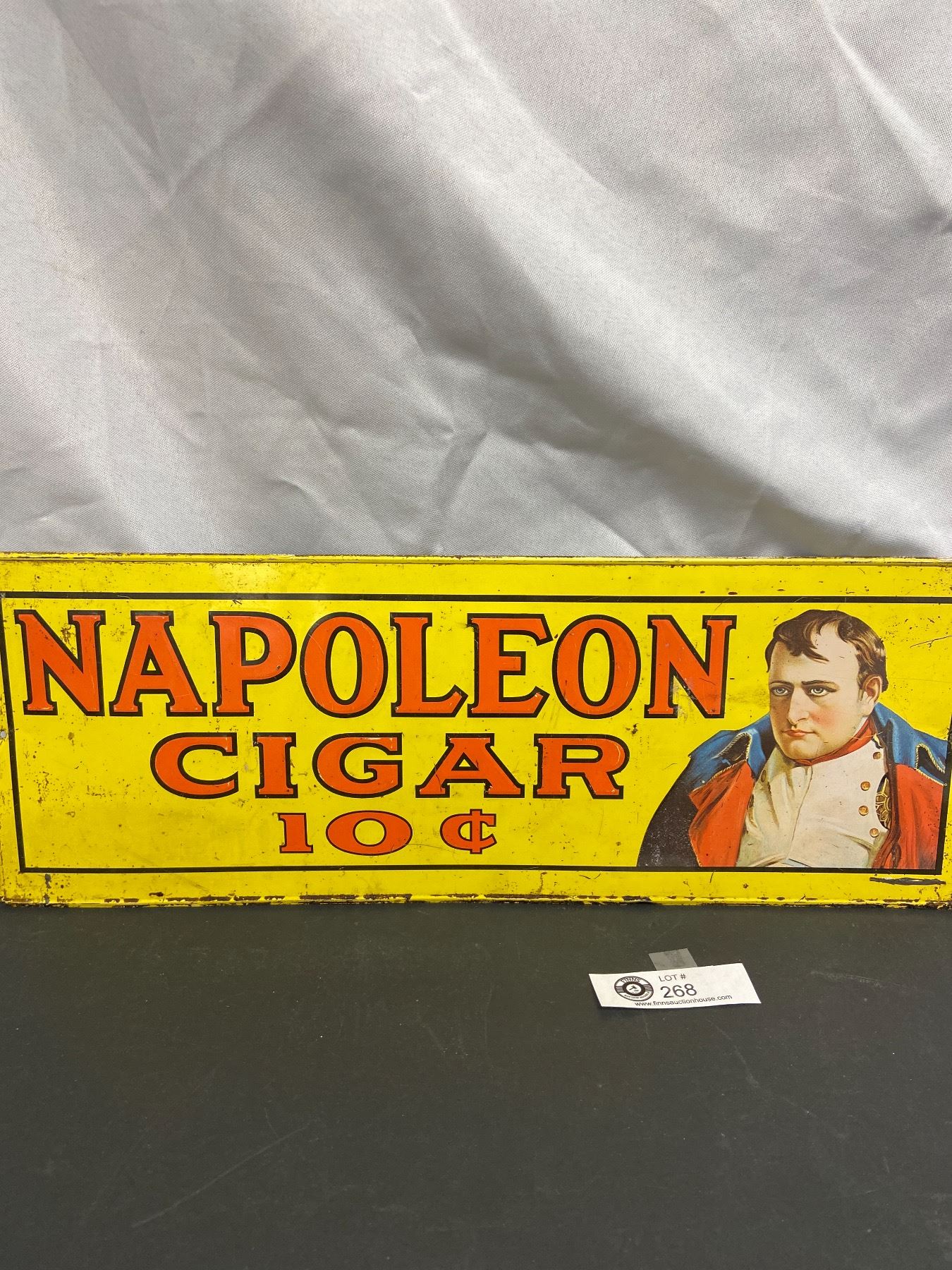 Vintage 1974 Napolean Cigar Tin Sign. Embossed Bright Colours and Nice Shape. 19.25" x 8"