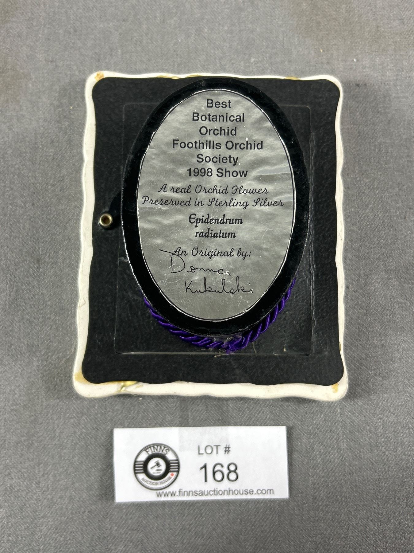 Vintage 1998 Artist Signed Handcrafted Real Orchid Preserved In Sterling Silver- Framed 4" x 5"