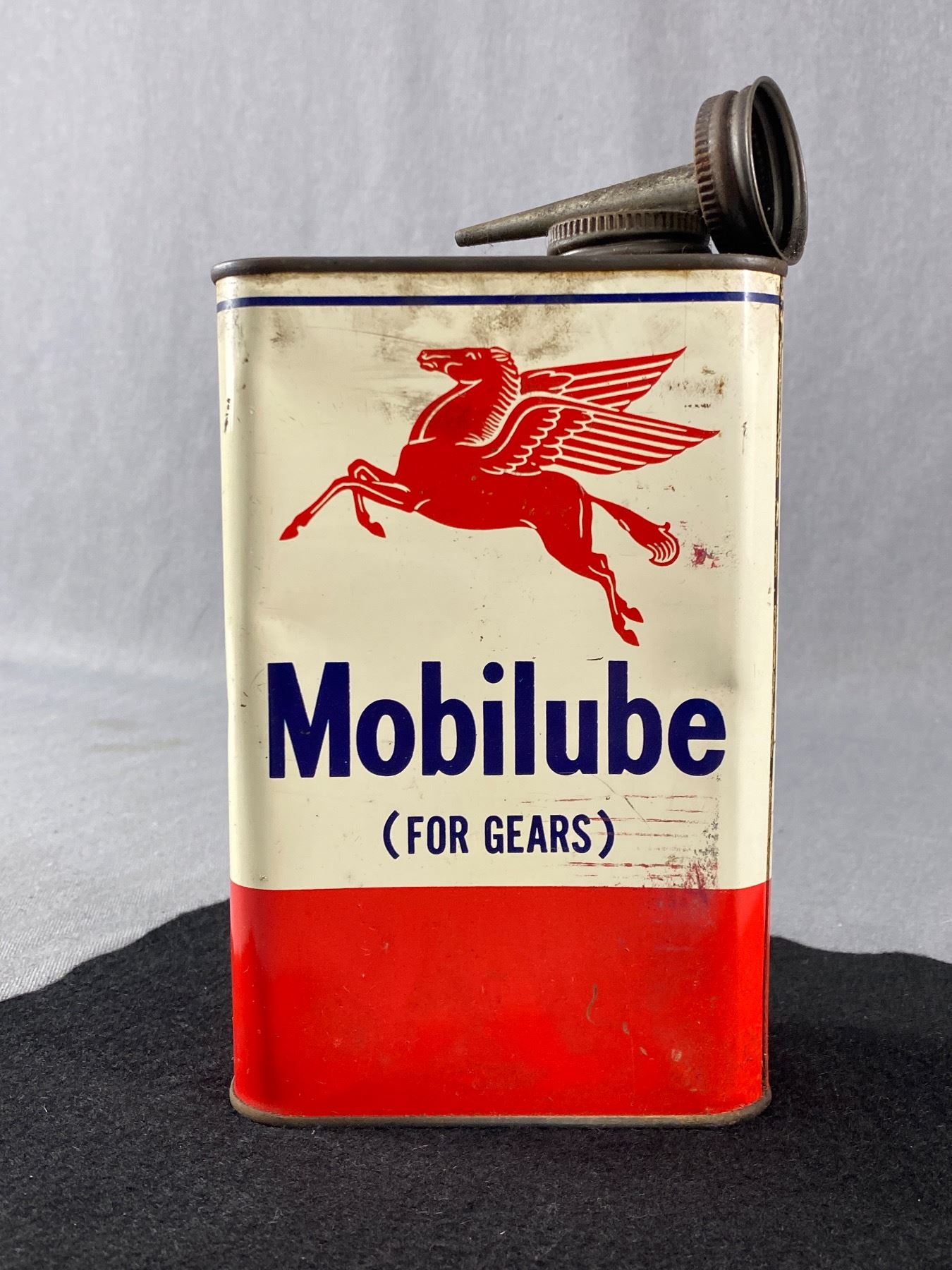 Vintage 2lb Mobilube (For Gears) Tin Can w/ Metal Nozzle & Contents