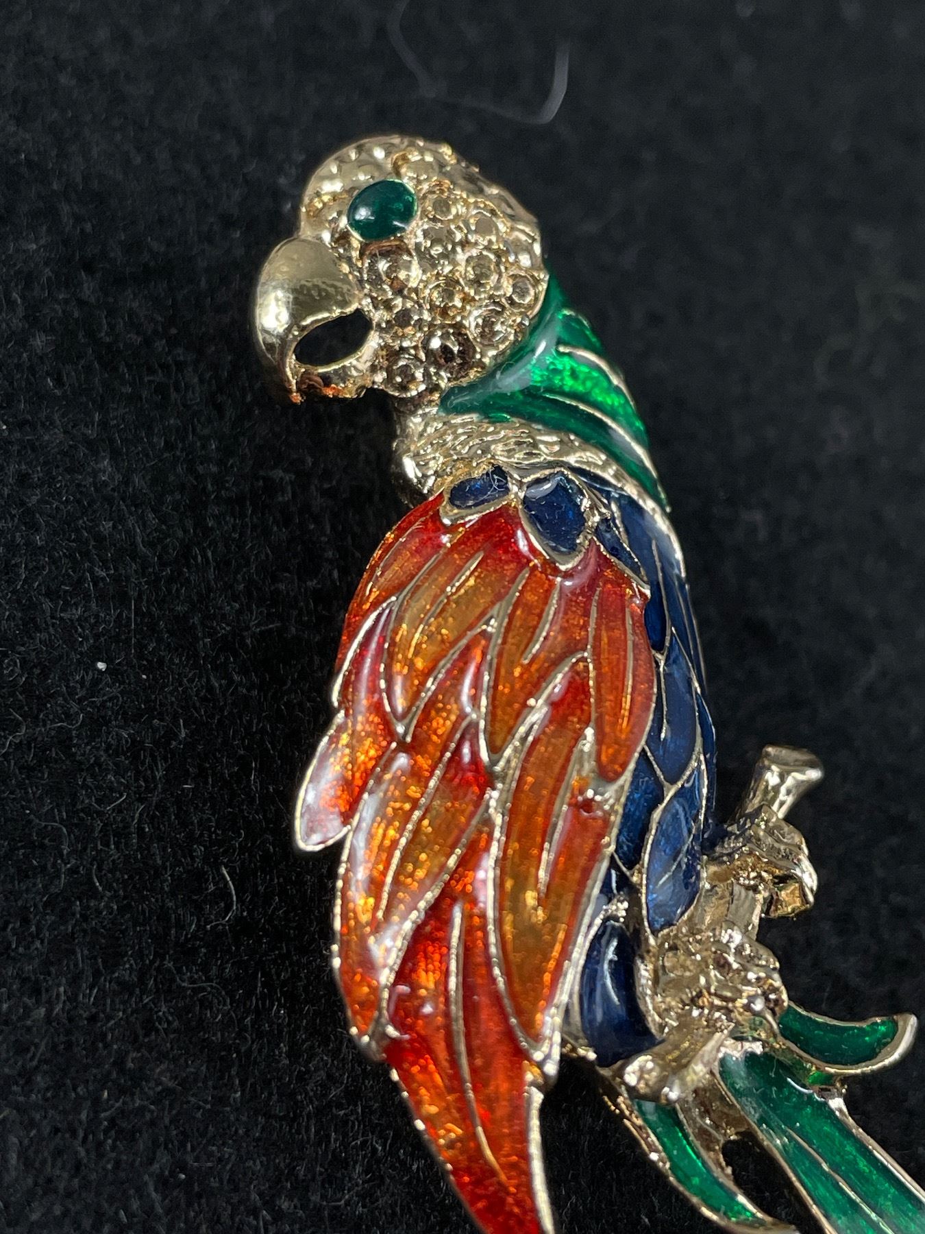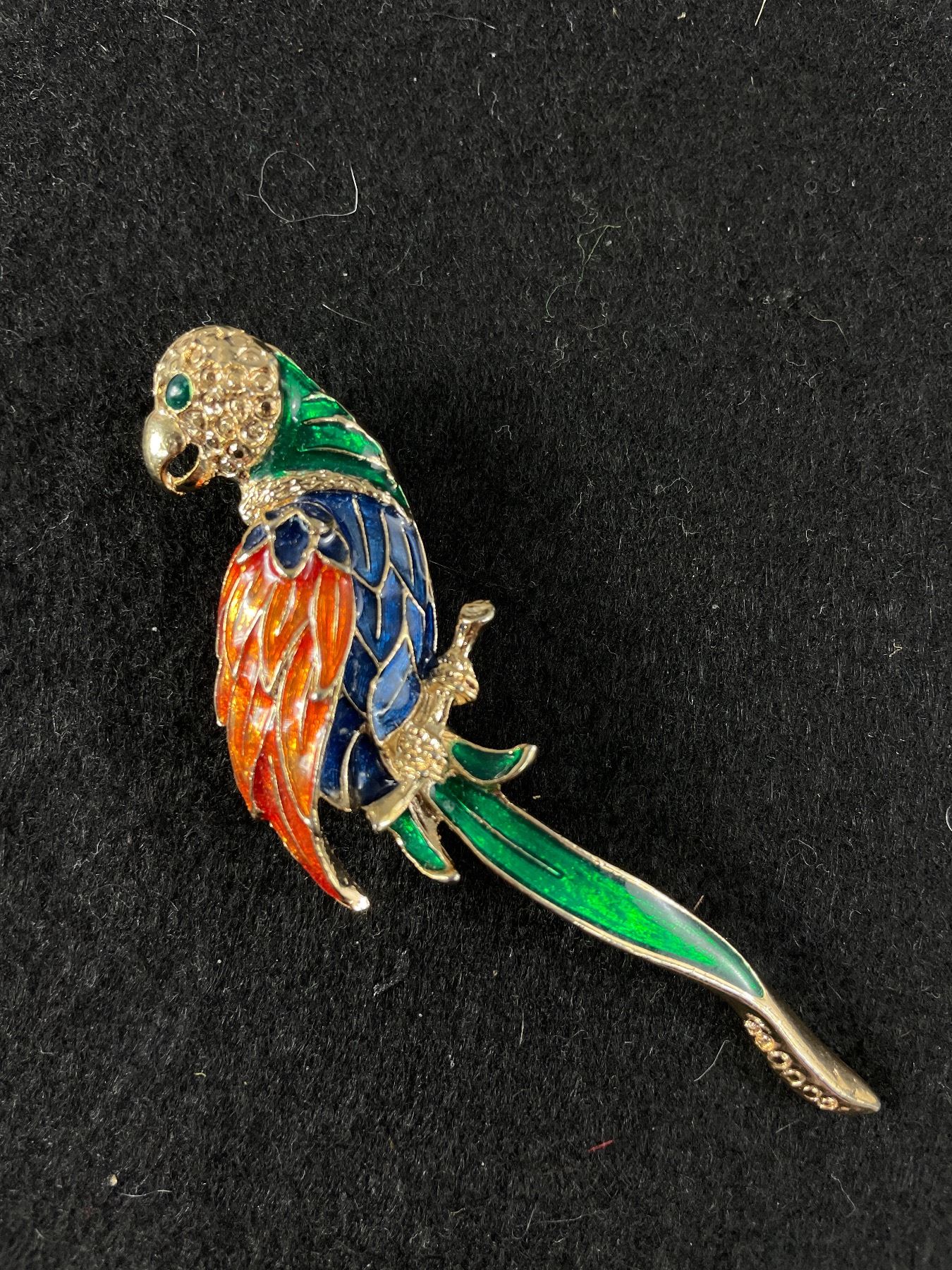 Vintage 3.5" H Multicolour Enamel and Rhinestone Parrott Brooch