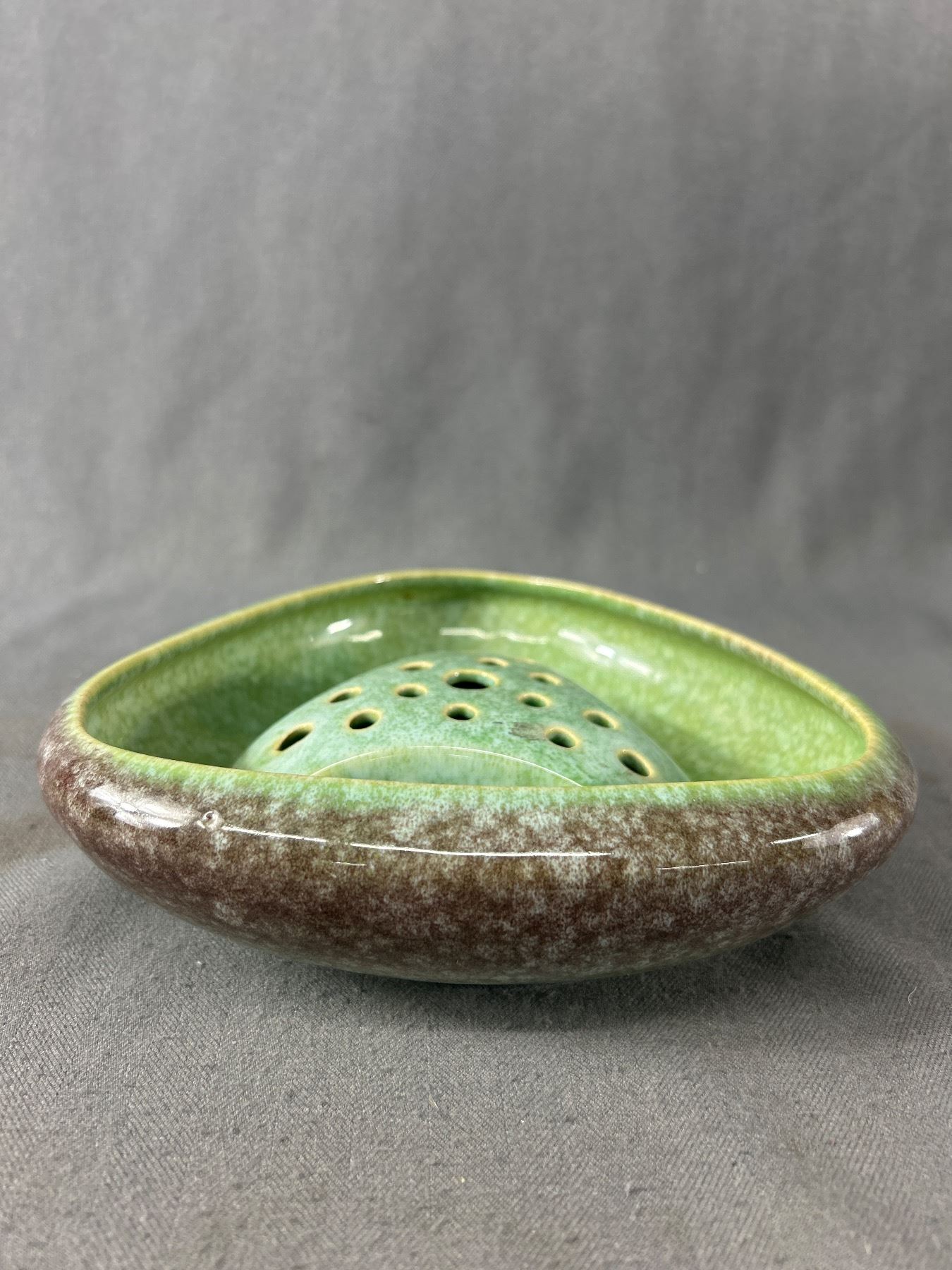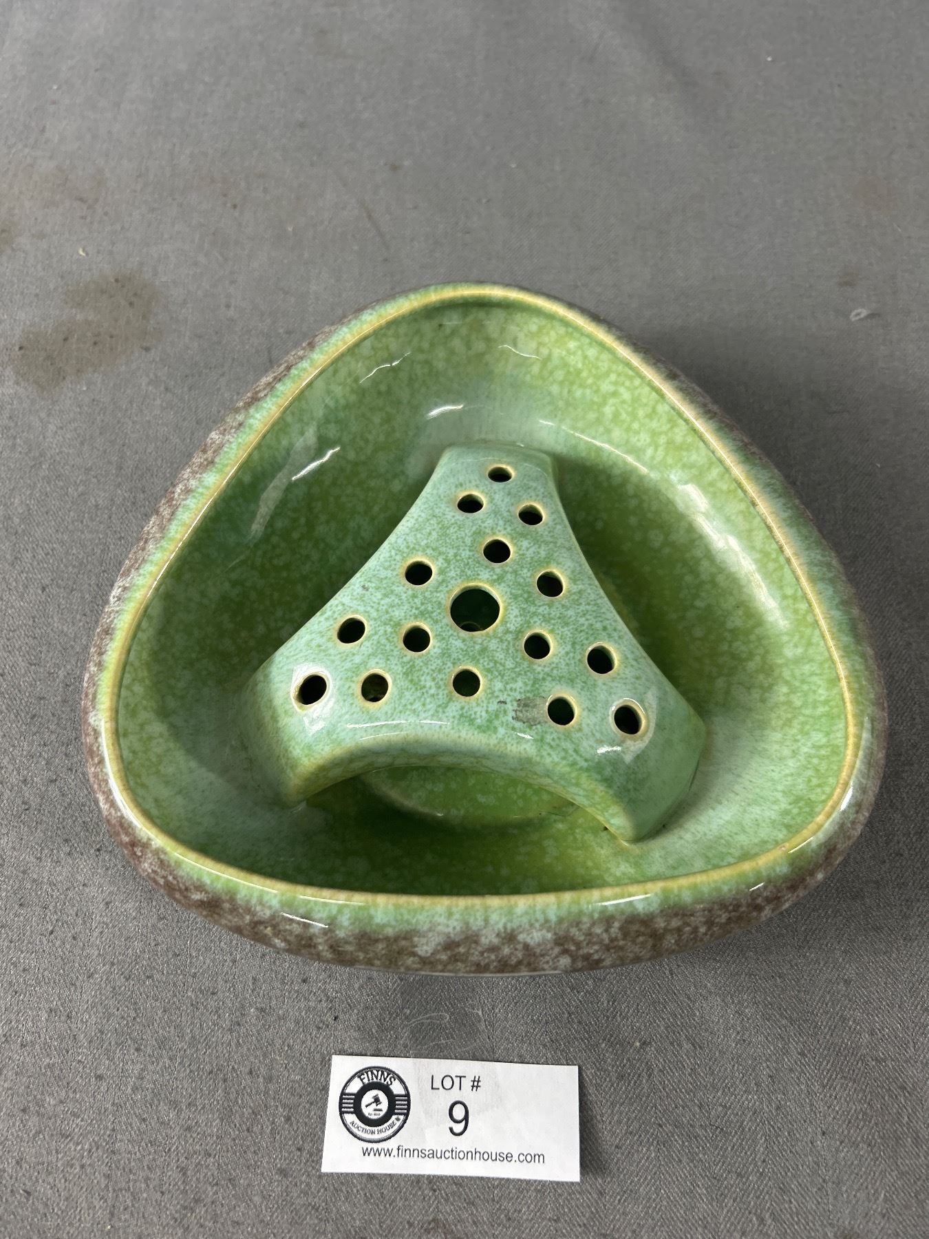 Vintage 3 Sided Flower Bowl w/ Frog. Marked Canada 7135A. Approx. 6.5" Across