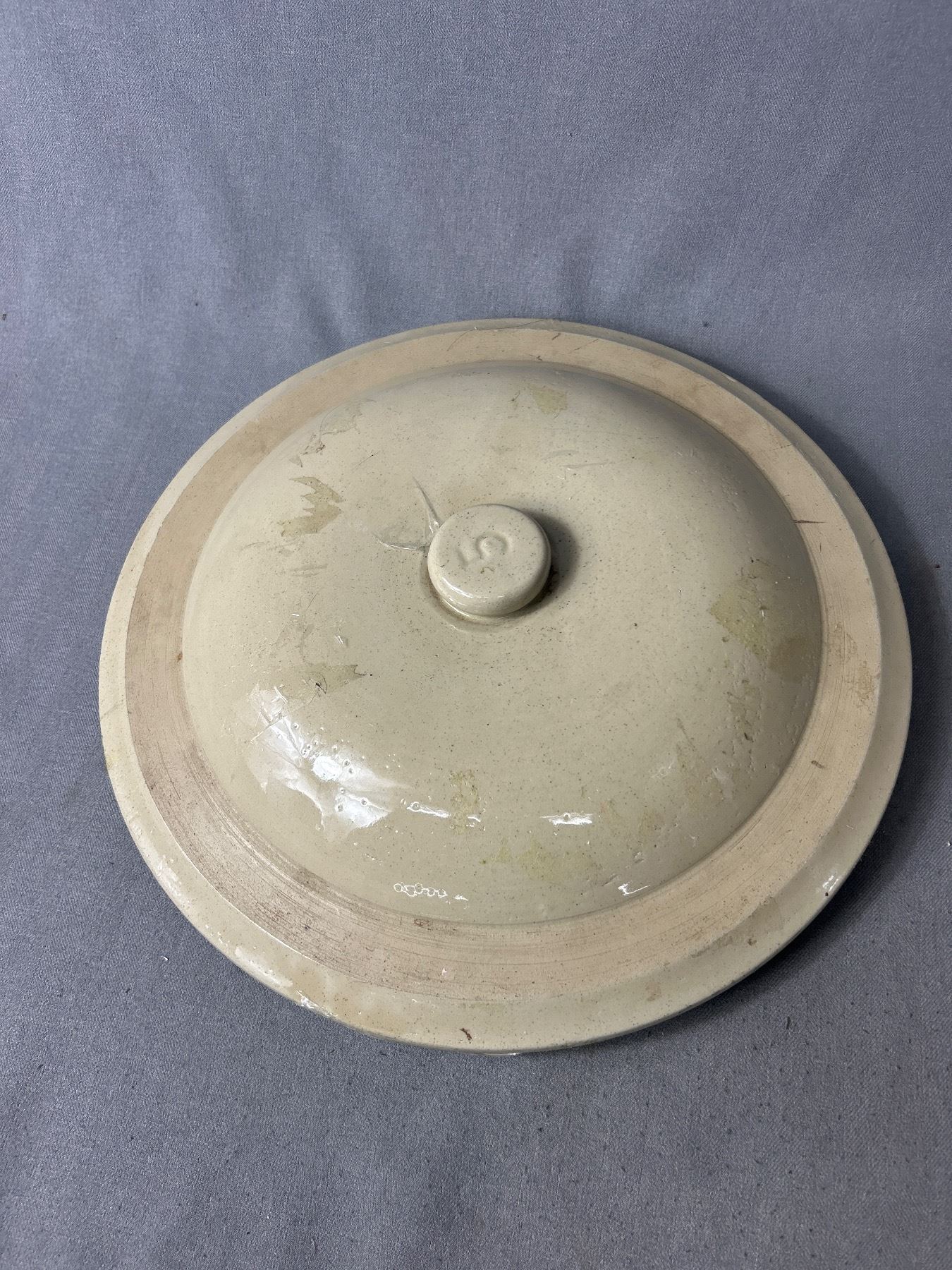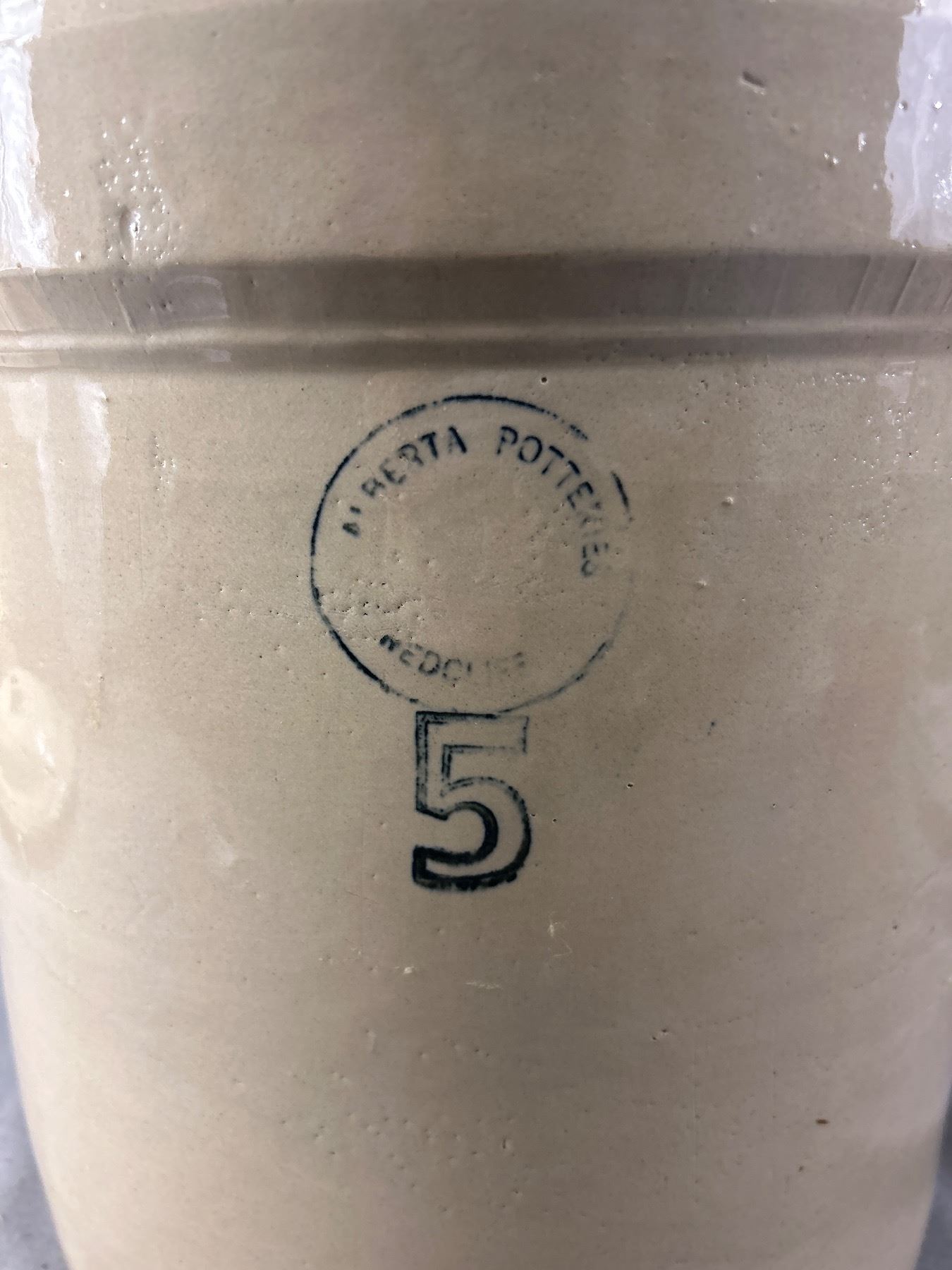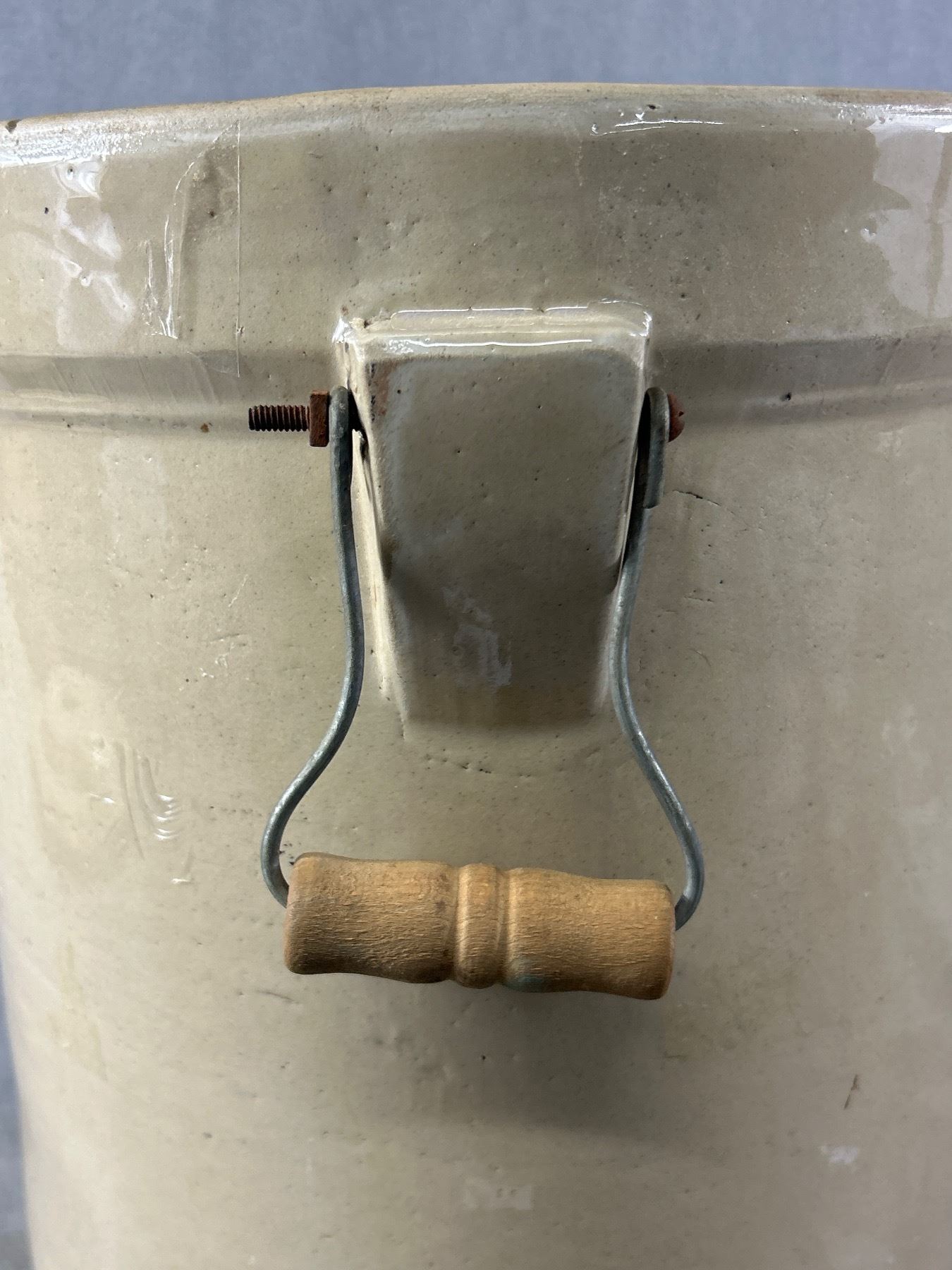 Vintage 5 Gallon Alberta Potteries Stoneware Crock Pot w/ Lid & Wire/Wood Handles. NO SHIPPING. Approx. 14.5" H