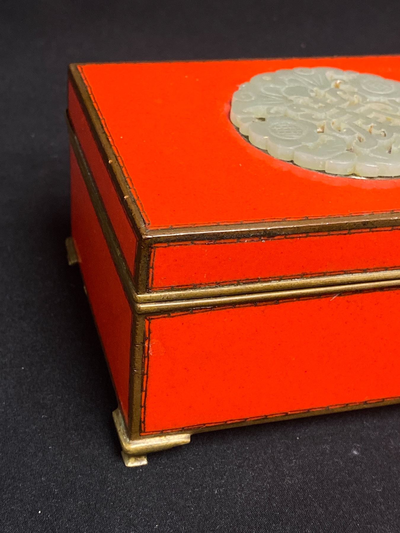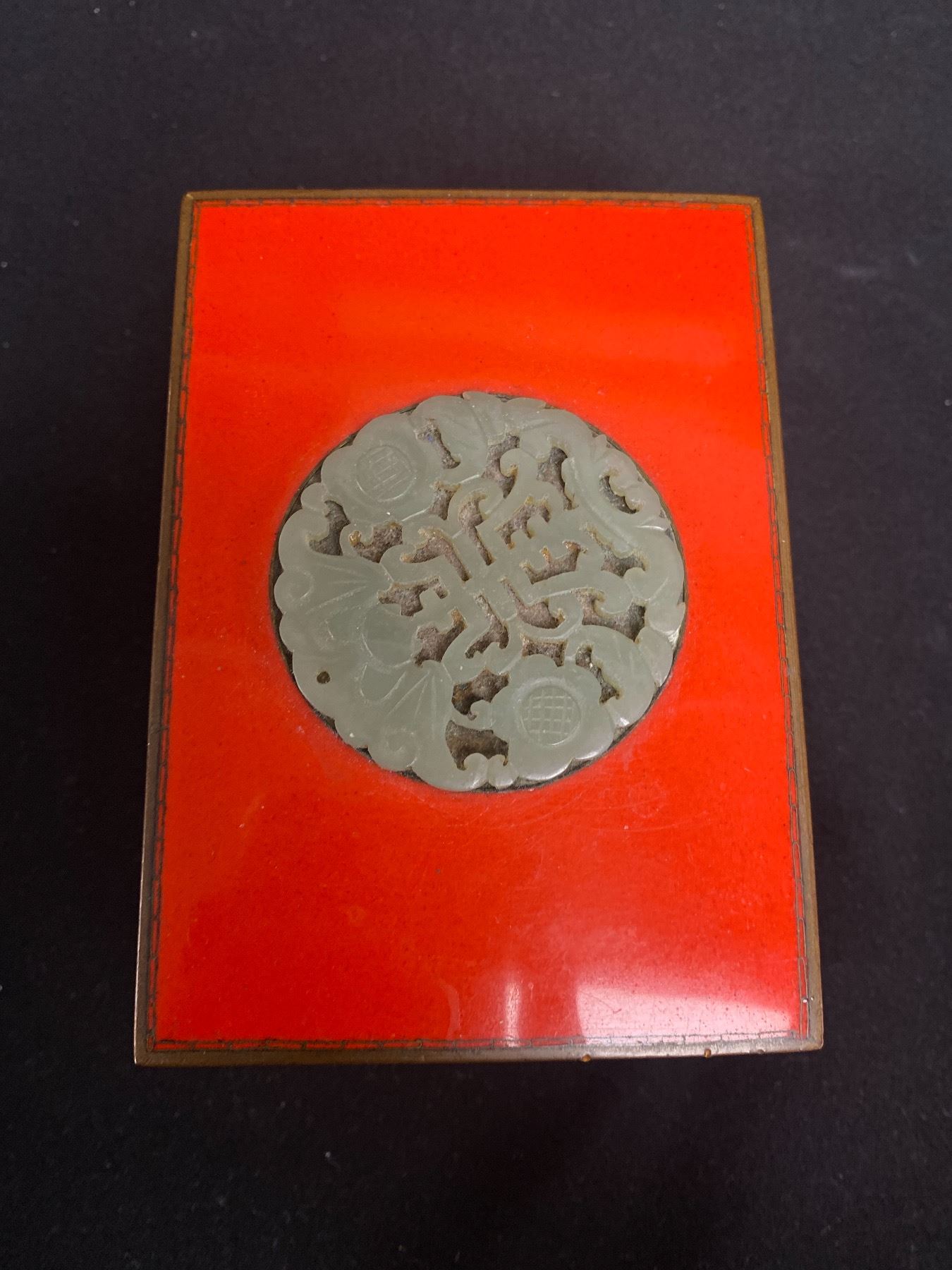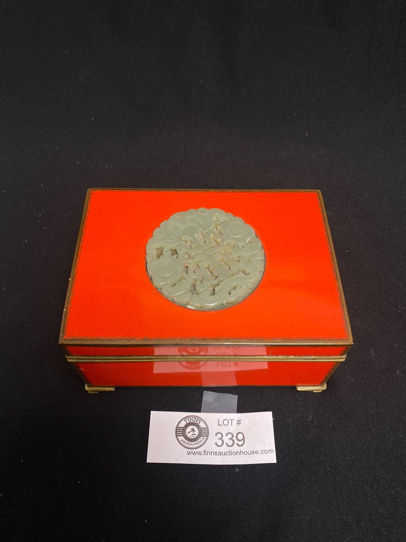 Vintage 5" W Asian Trinket Box with Jade Insert On Top.
