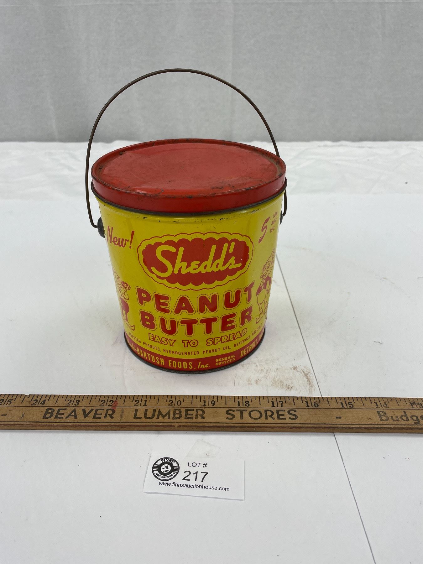 Vintage 5 lb Shedds Peanut Butter Tin with Lid Nice Graphics