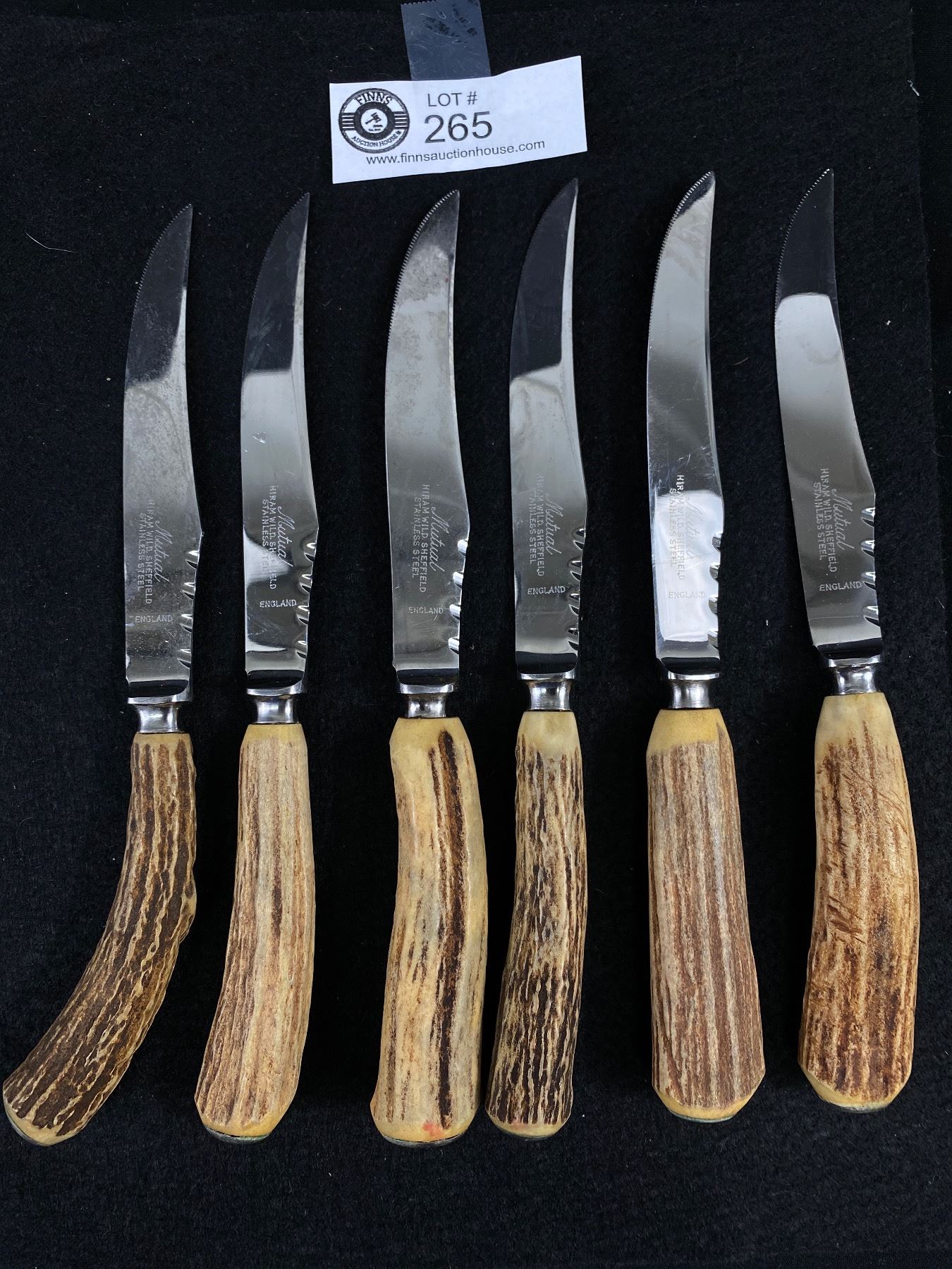 Vintage 6 Pcs Set, Faux Stag Mutural Hiram Wild Sheffield England Knives