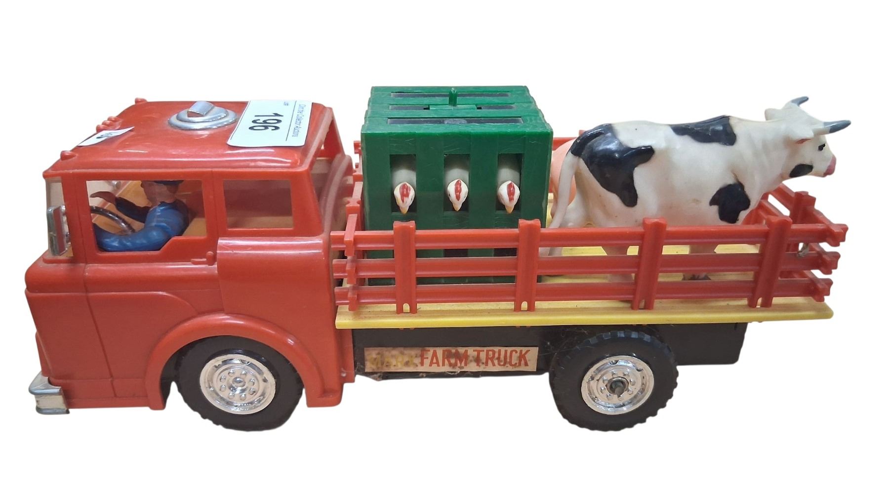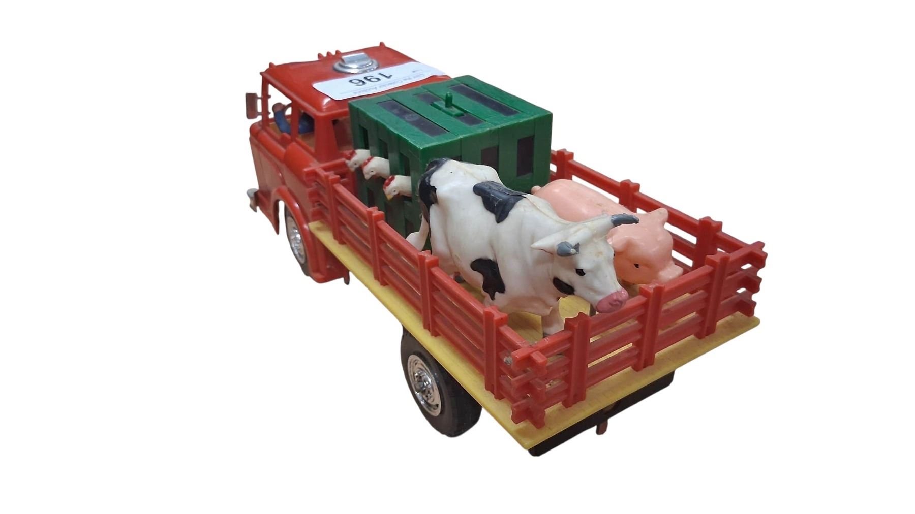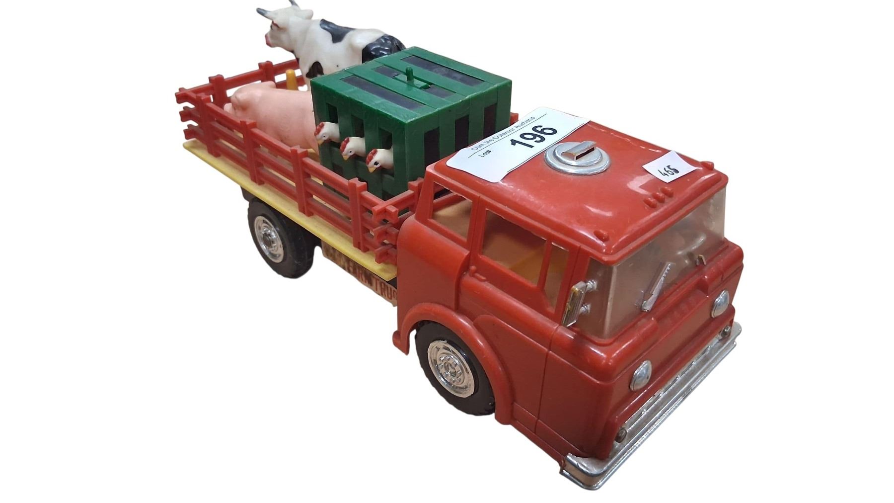 Vintage 60s toy farm truck with animals, nice condition 11"