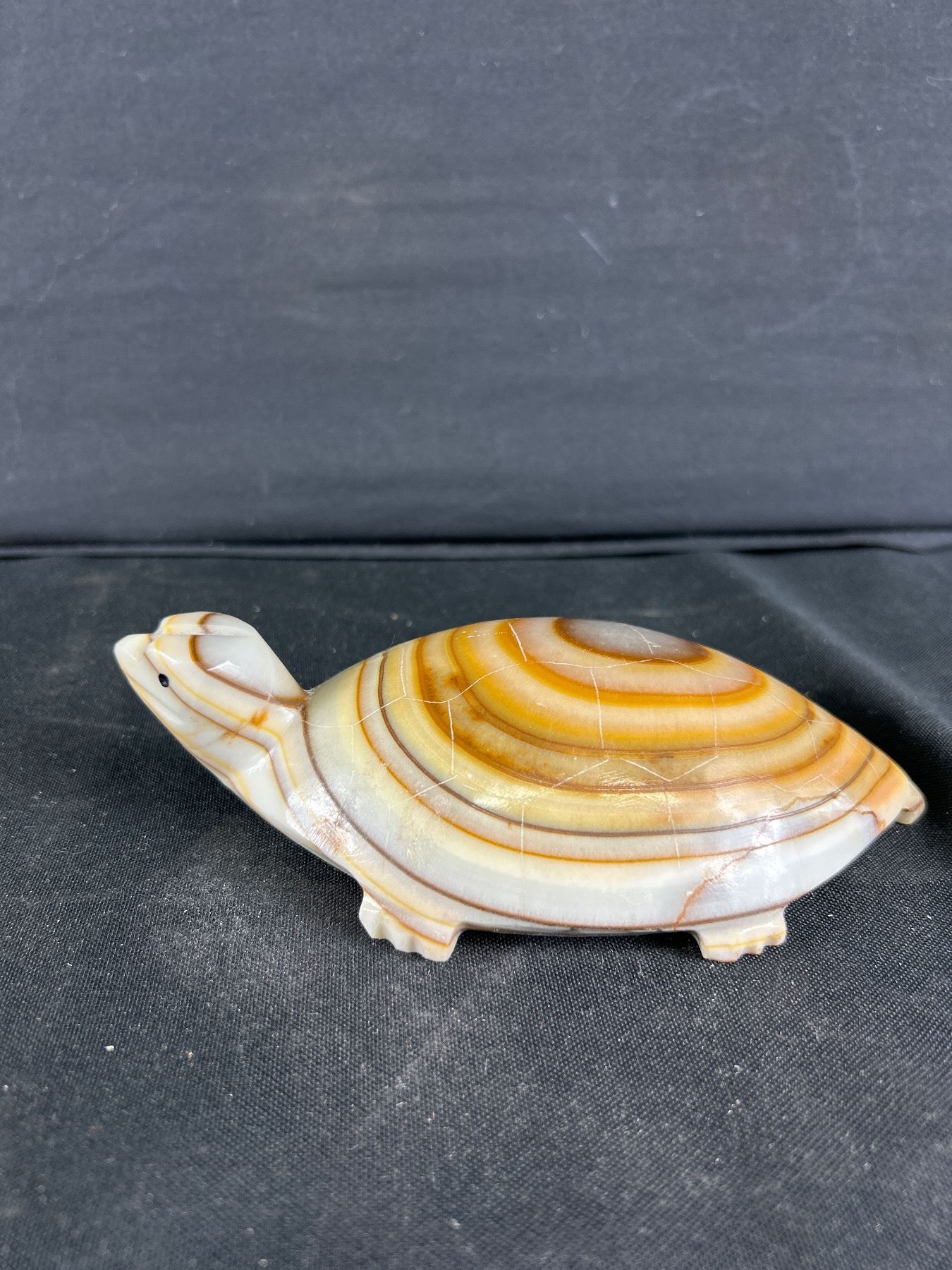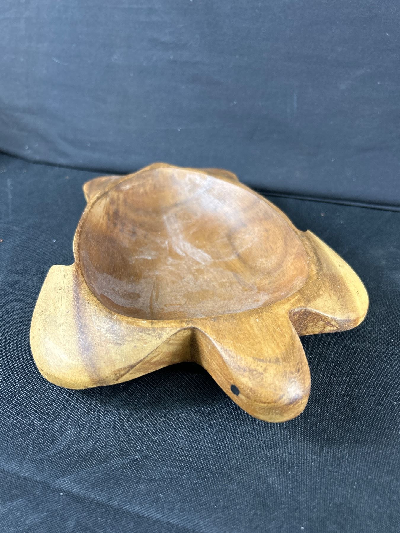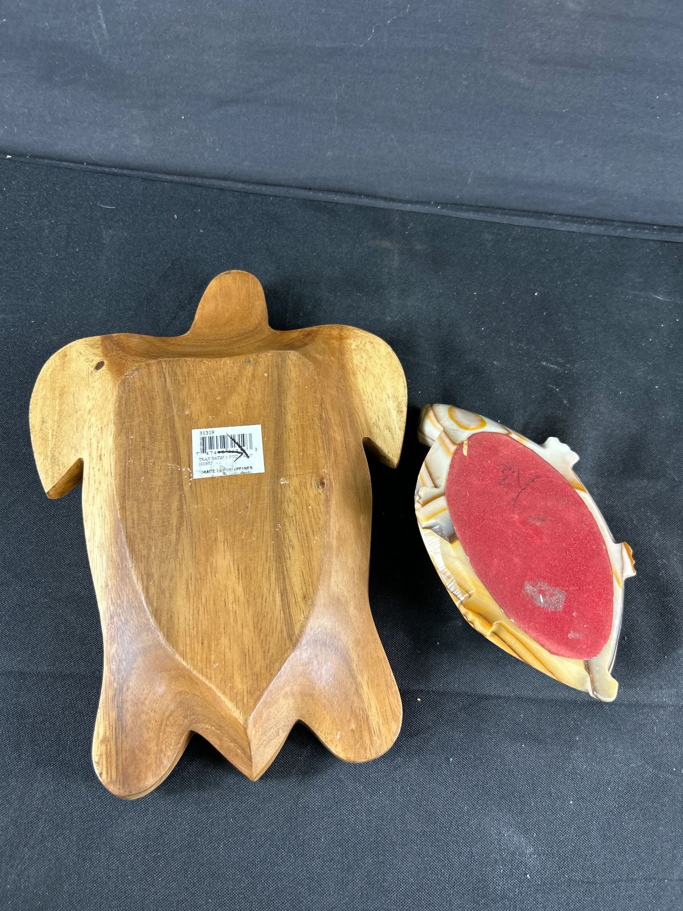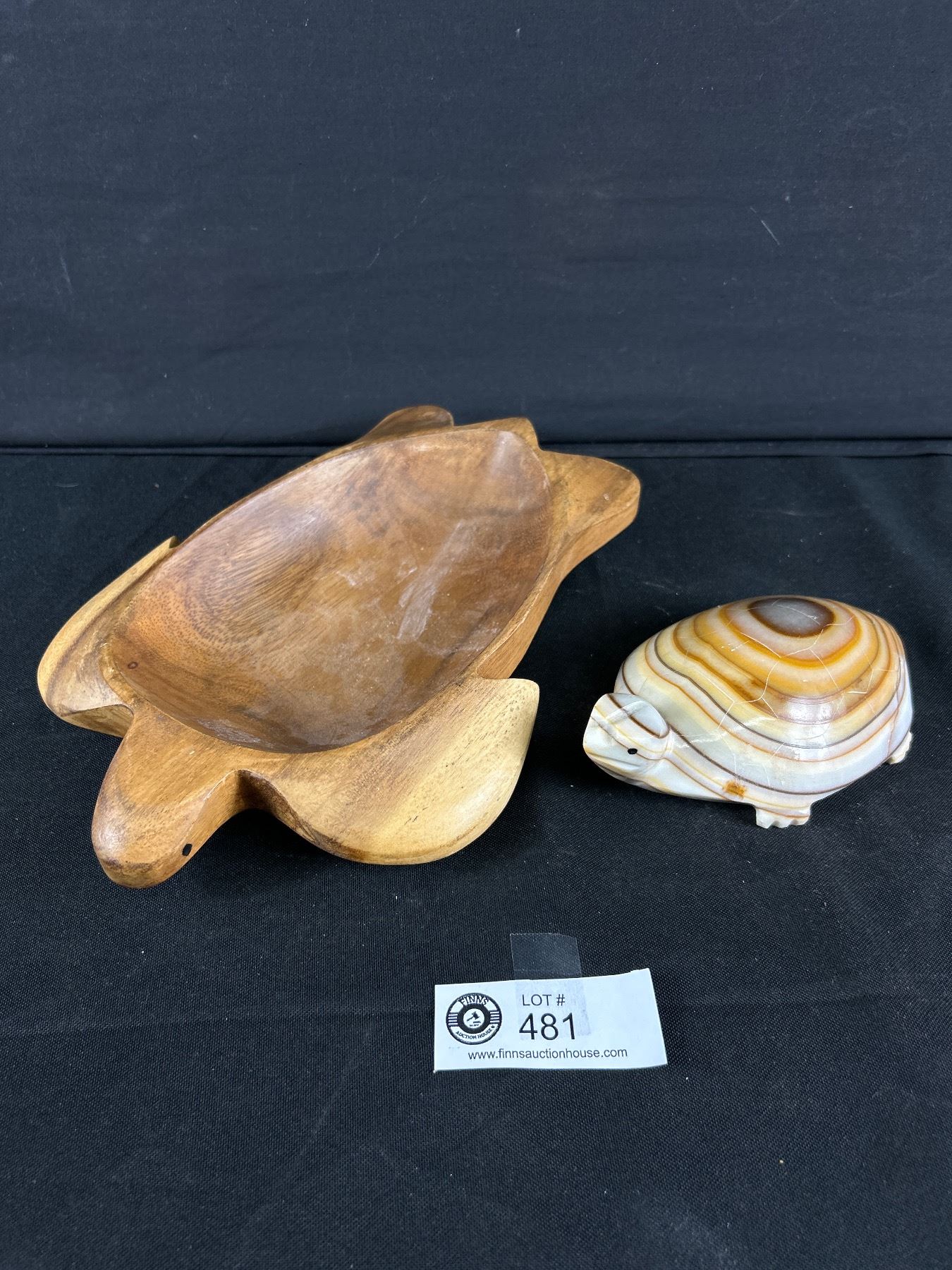 Vintage 7" Stone Carved Turtle & 10" Wood Sea Turtle Dish.