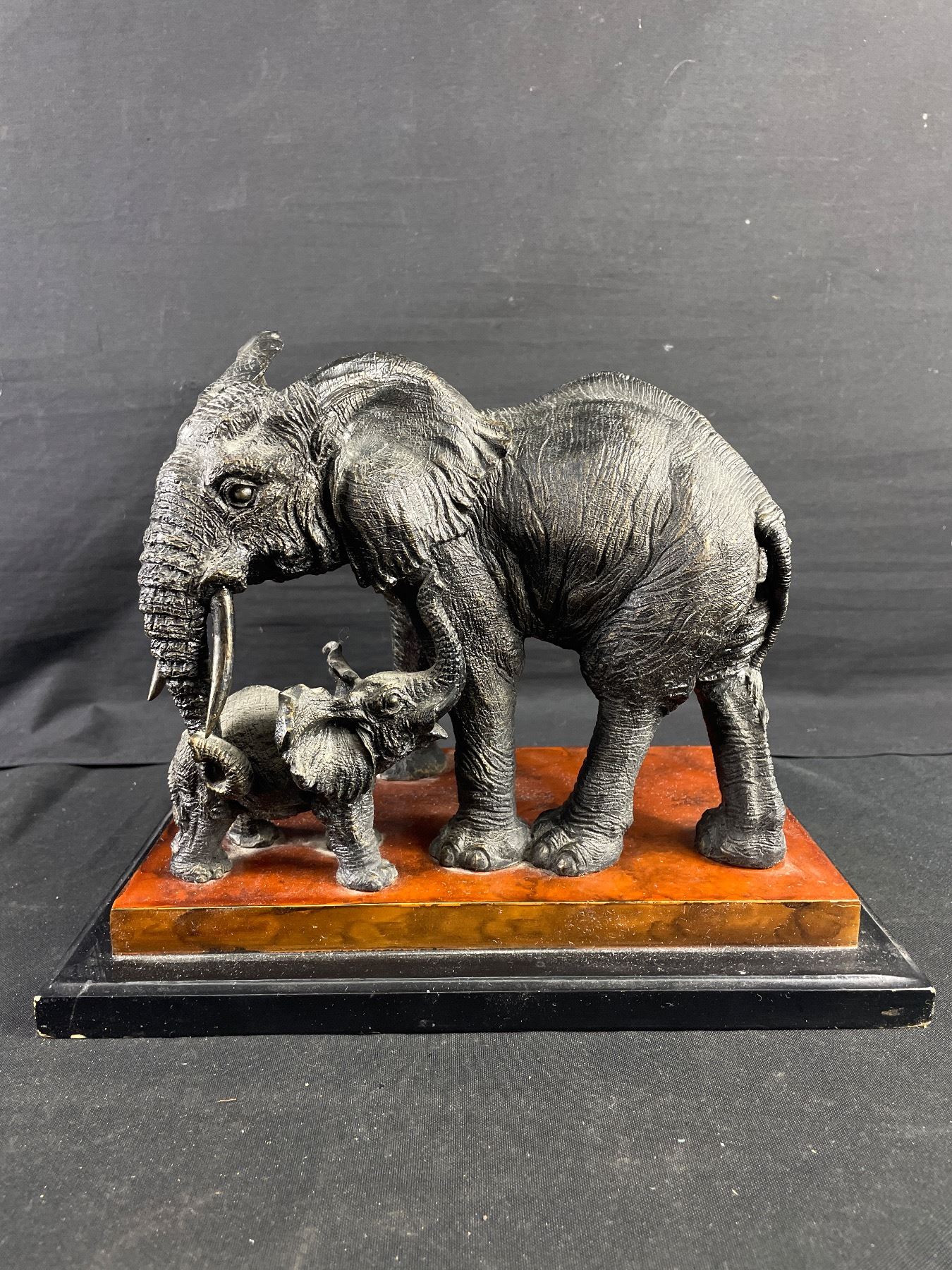 Vintage 8" H Resin Mother & Baby Elephant Figures On 11.75" x 7.75" on Decorative Base
