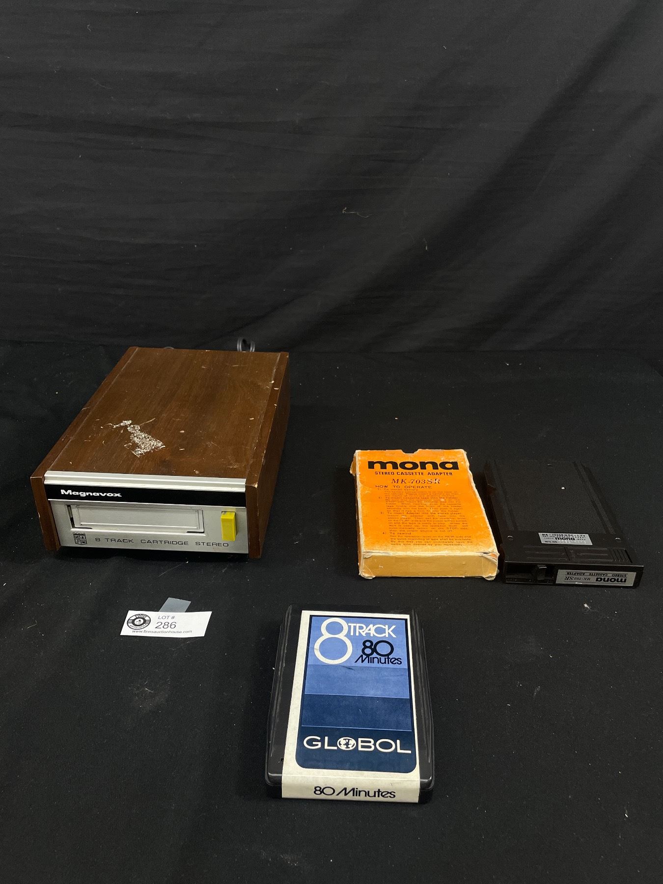 Vintage 8 Track Lot. Magnavox Stereo Player, Adapter Etc