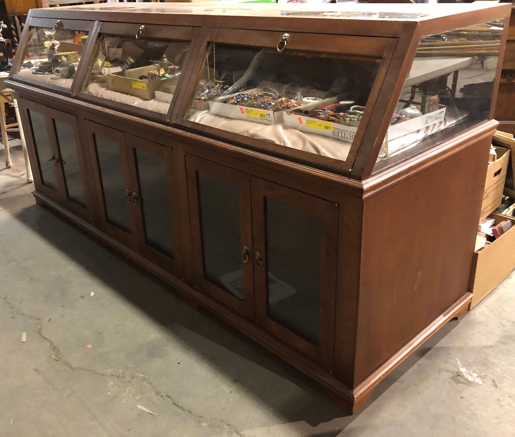 Vintage 8ft glass front wooden showcase display cabinet from the love show