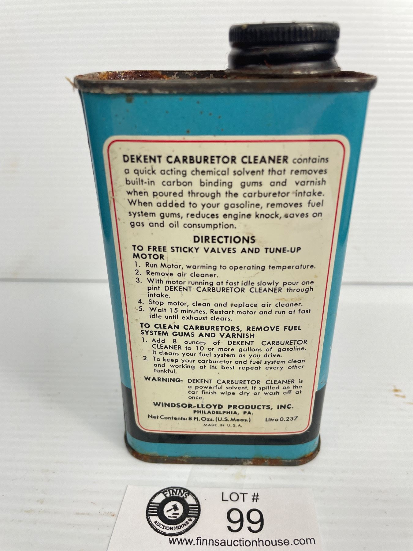 Vintage 8oz Dekent Carborator Cleaner Tin