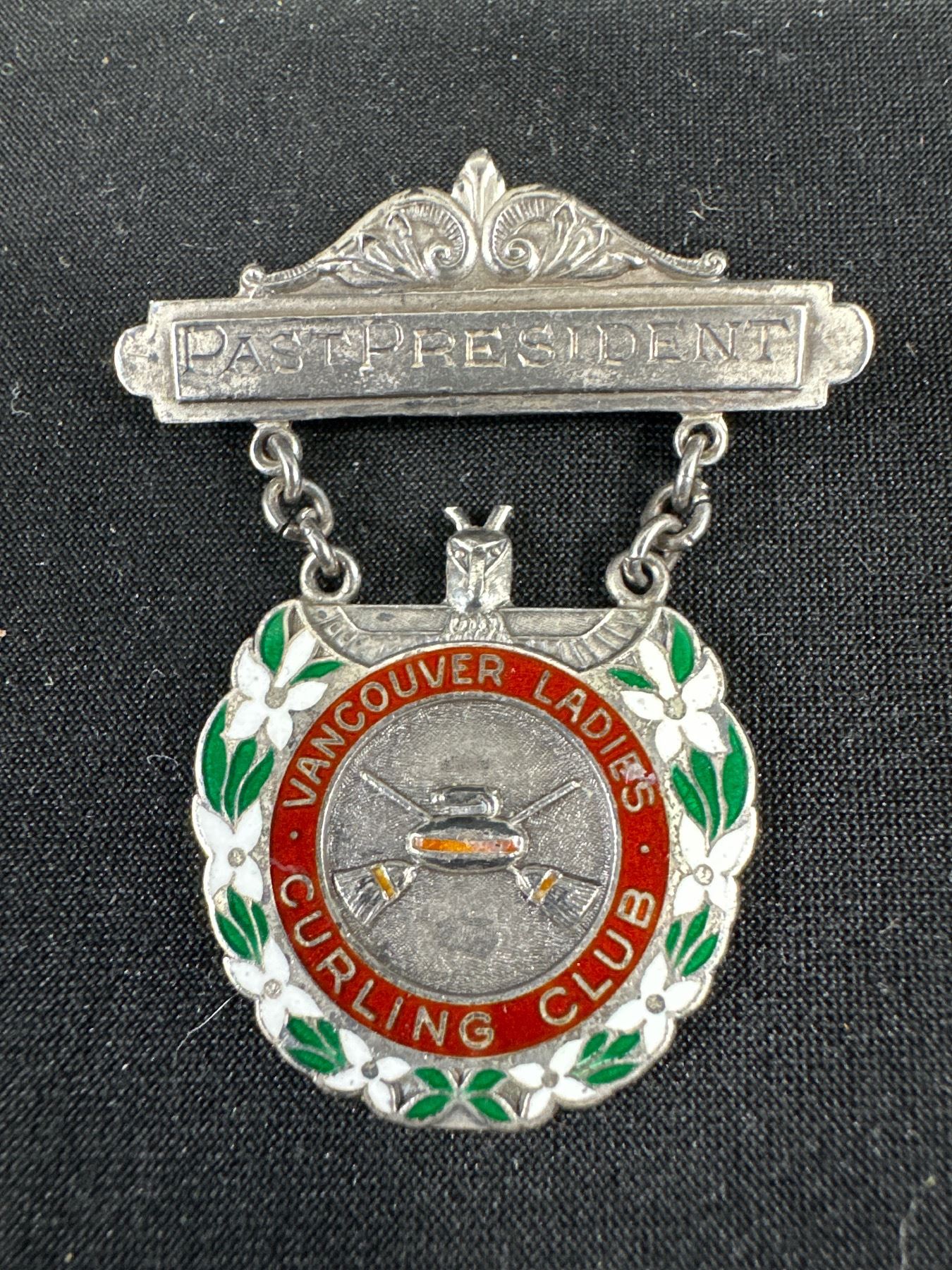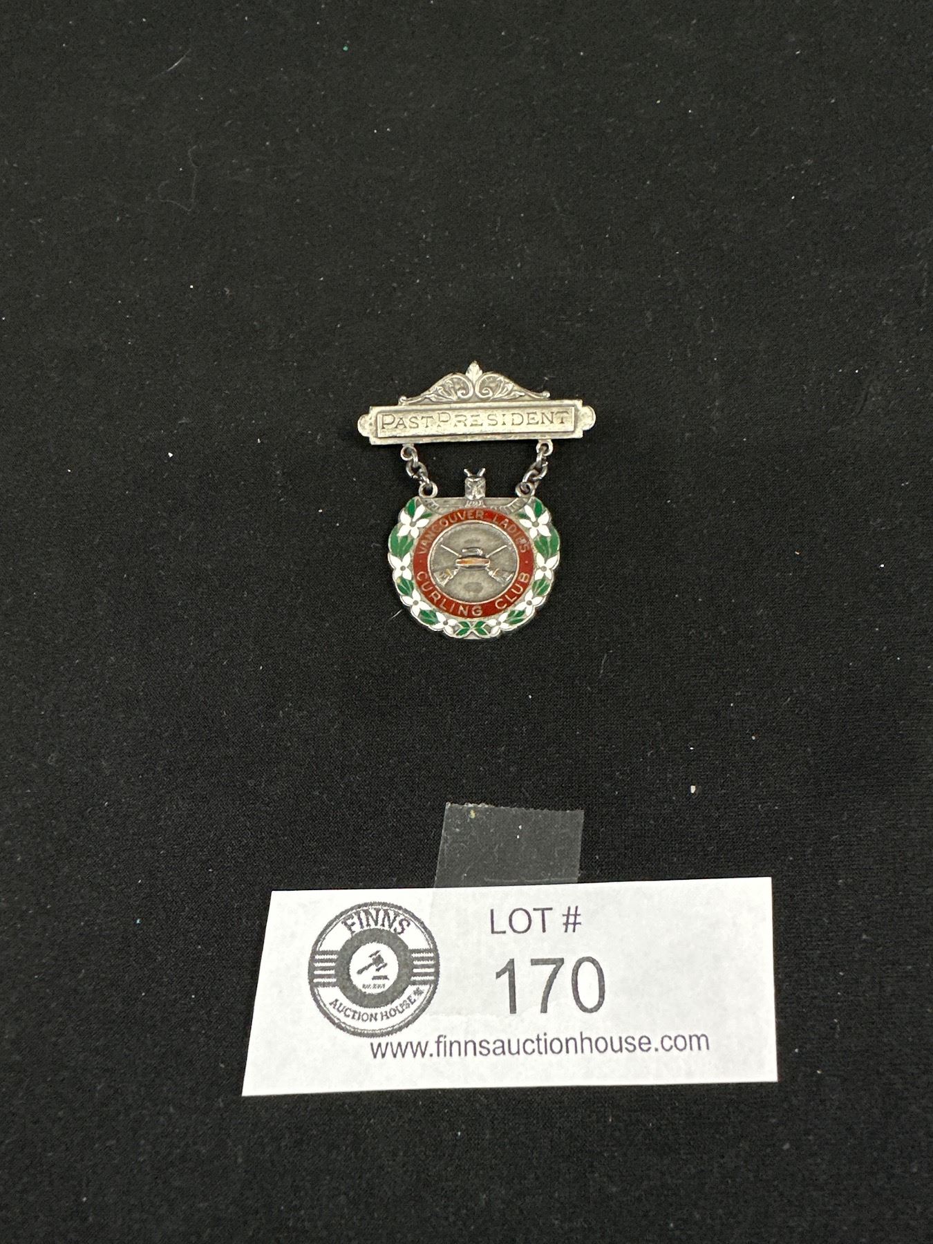 Vintage .925 Birks Sterling 1953-54 Past President Medal Pin, Vancouver Curling Club