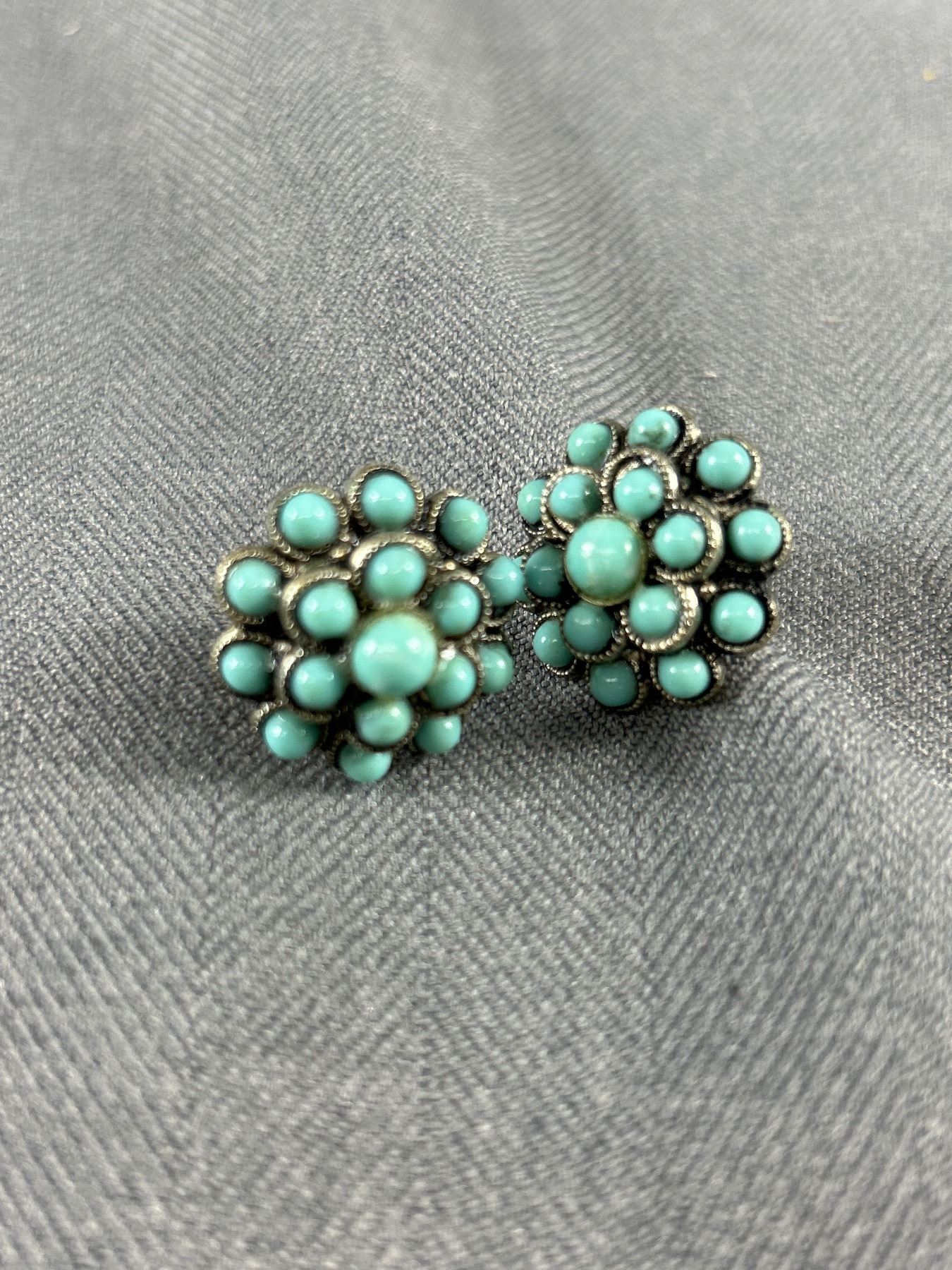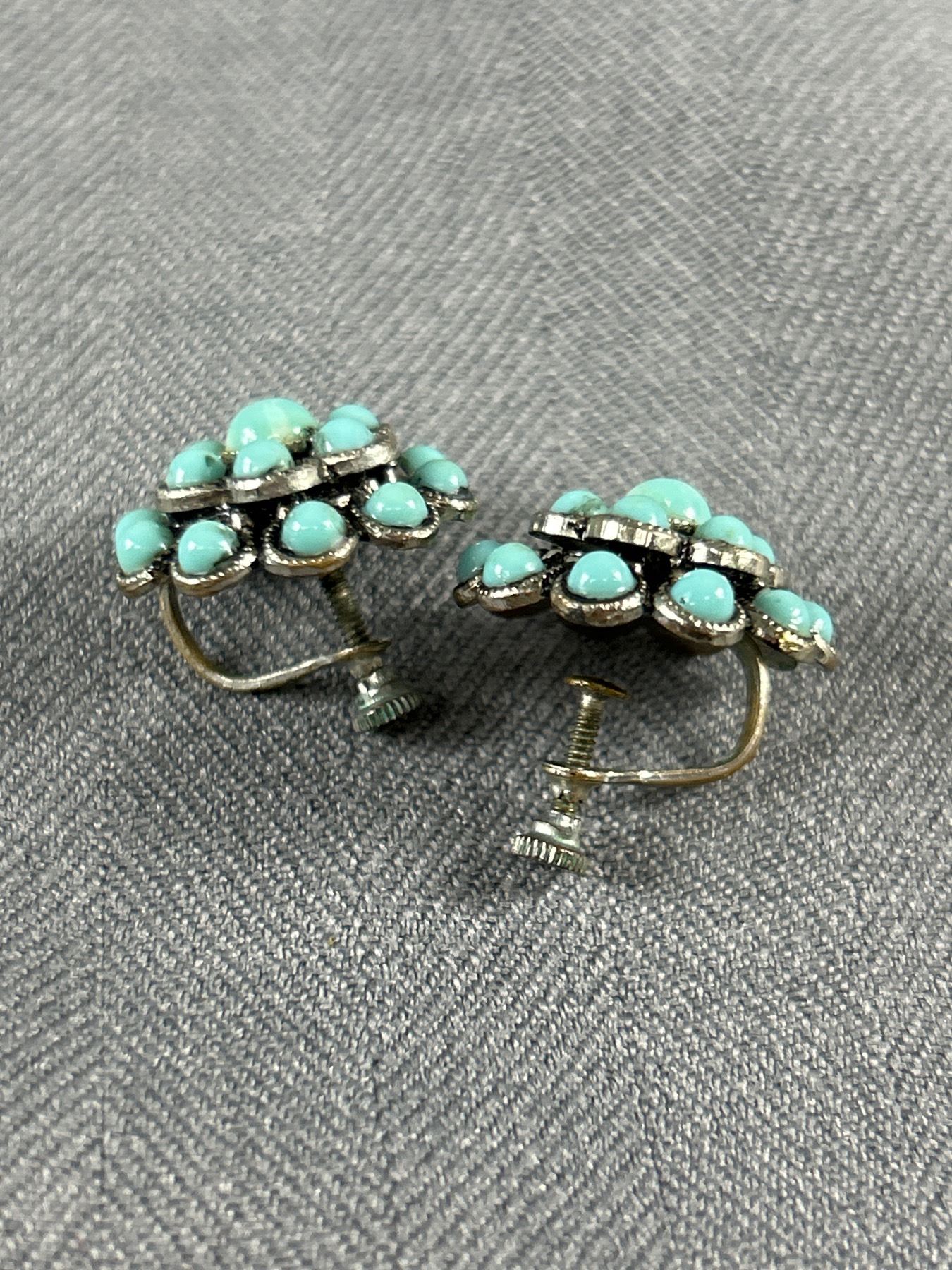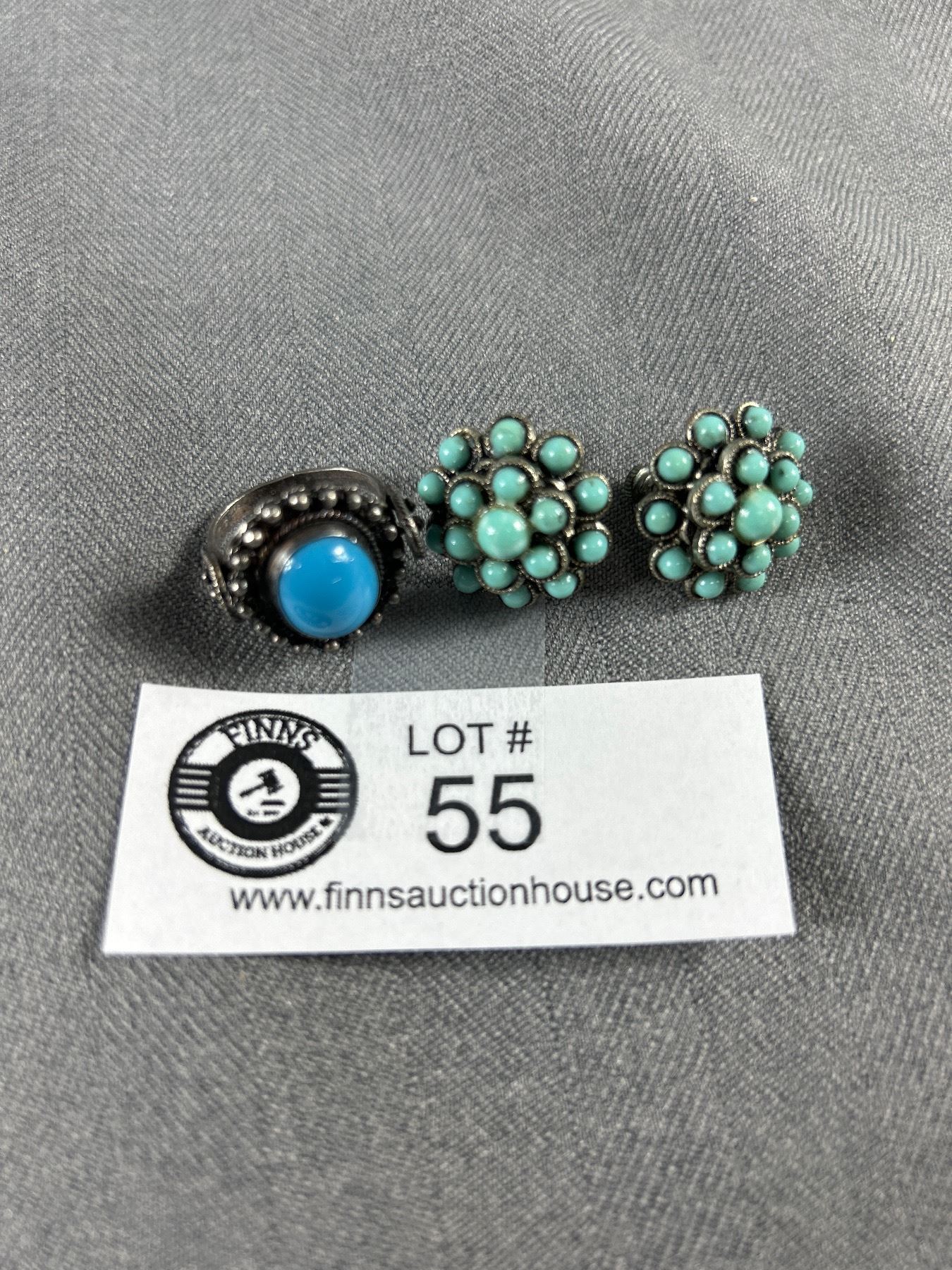 Vintage 925 Sterling Ring with Turquoise Stone & Screw back Earring with Turquoise Stones