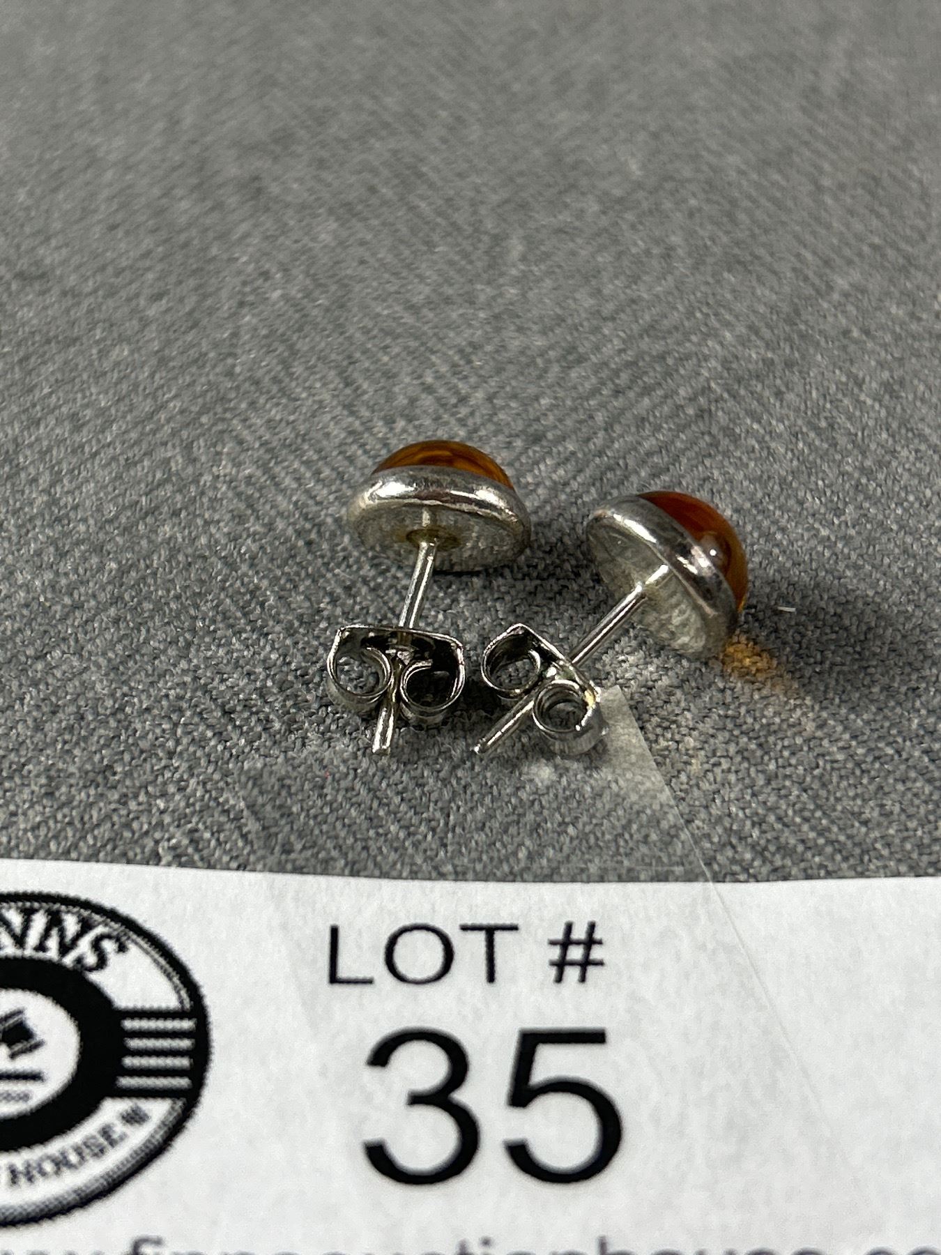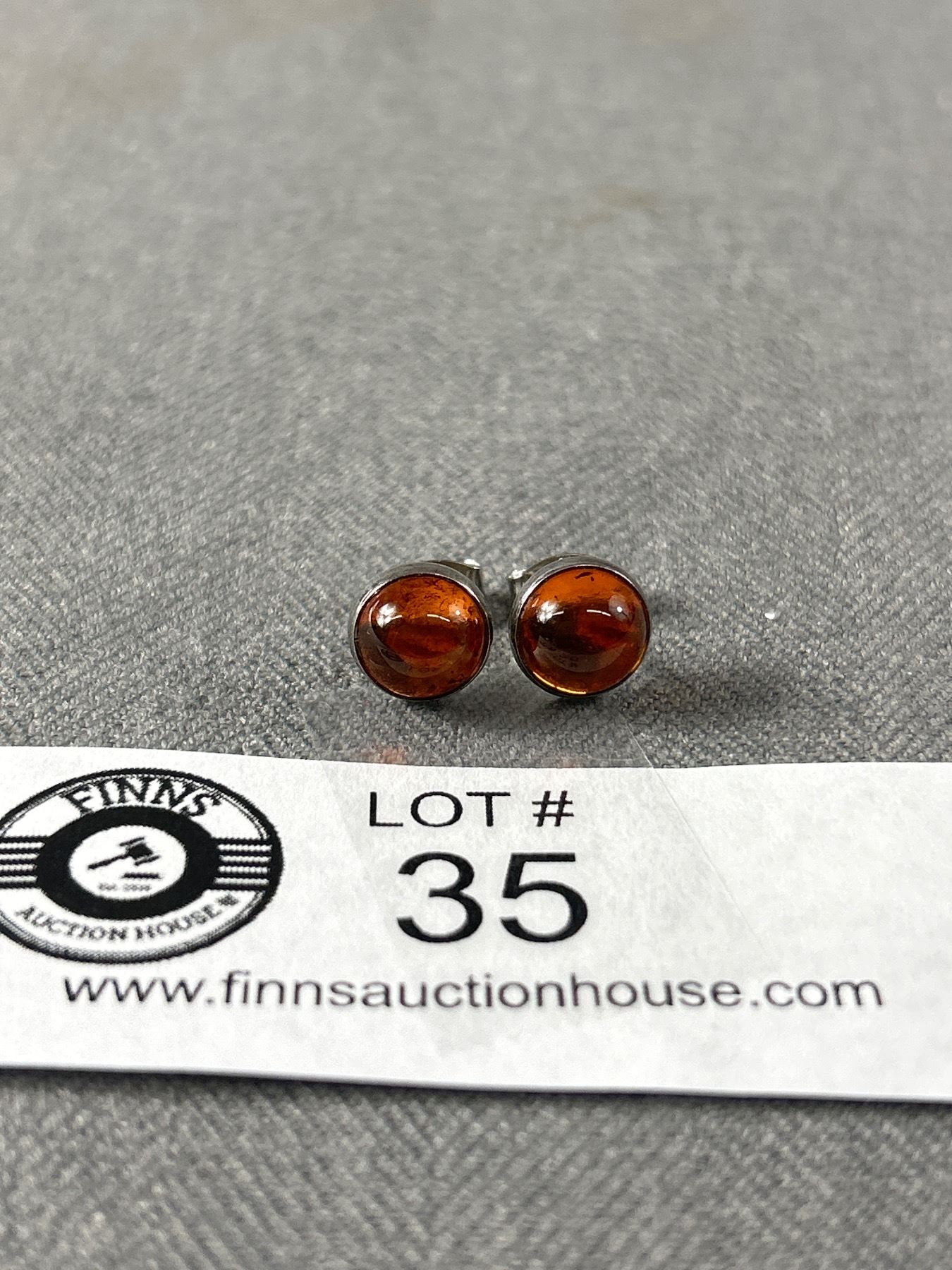 Vintage 925 Sterling Silver Genuine Amber Earrings