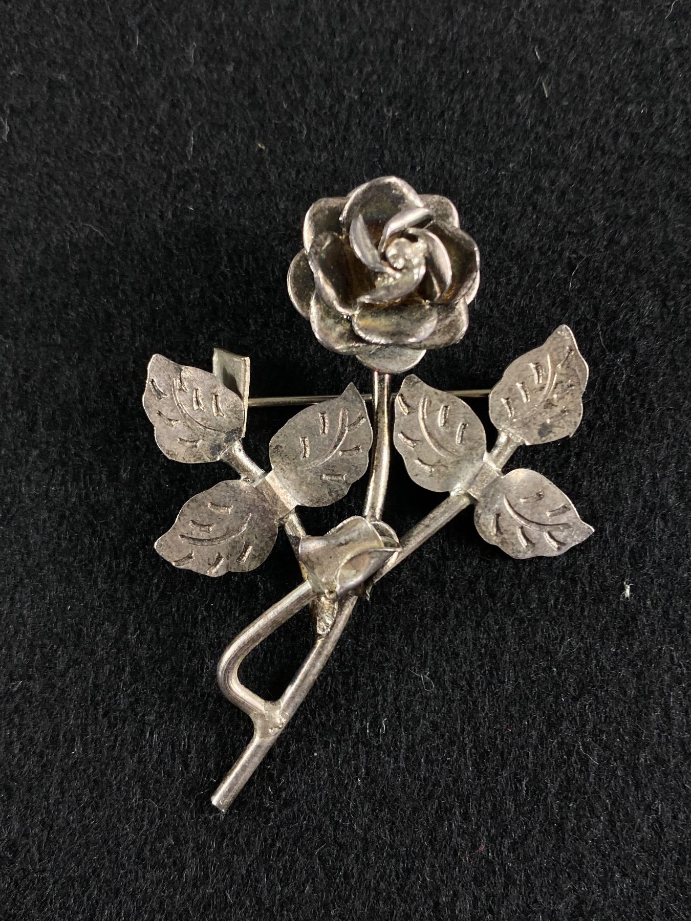 Vintage 925 Sterling Silver Rose Brooch Marked 925 Mexico