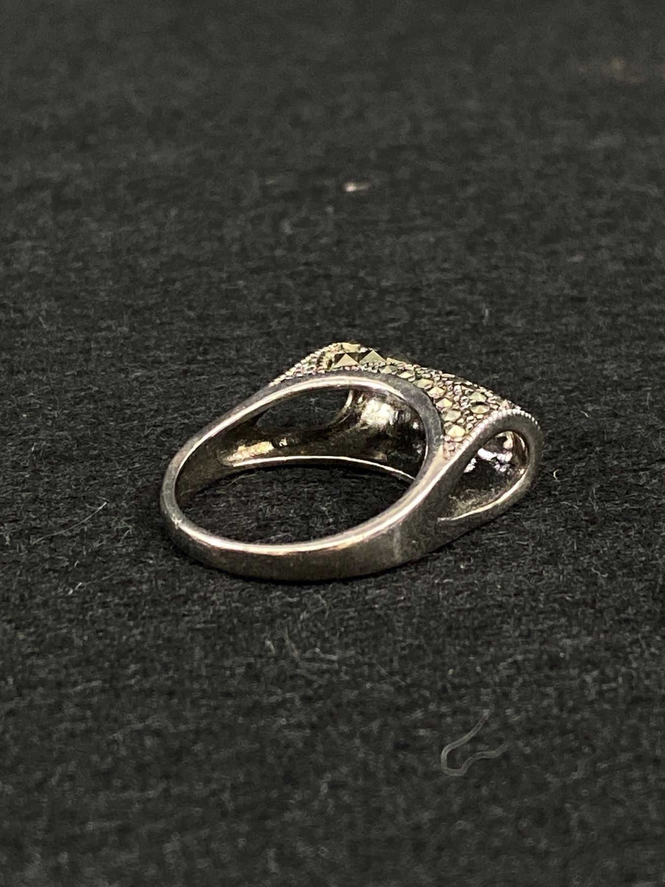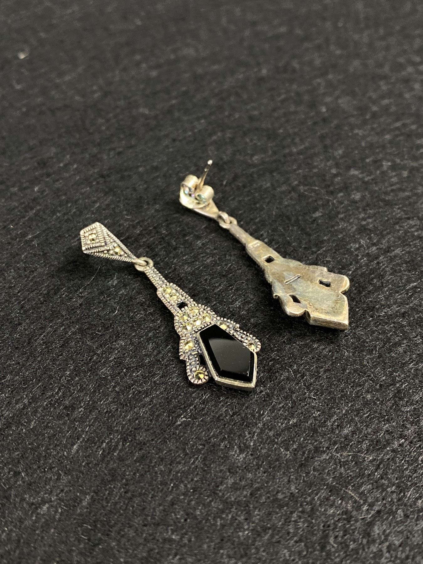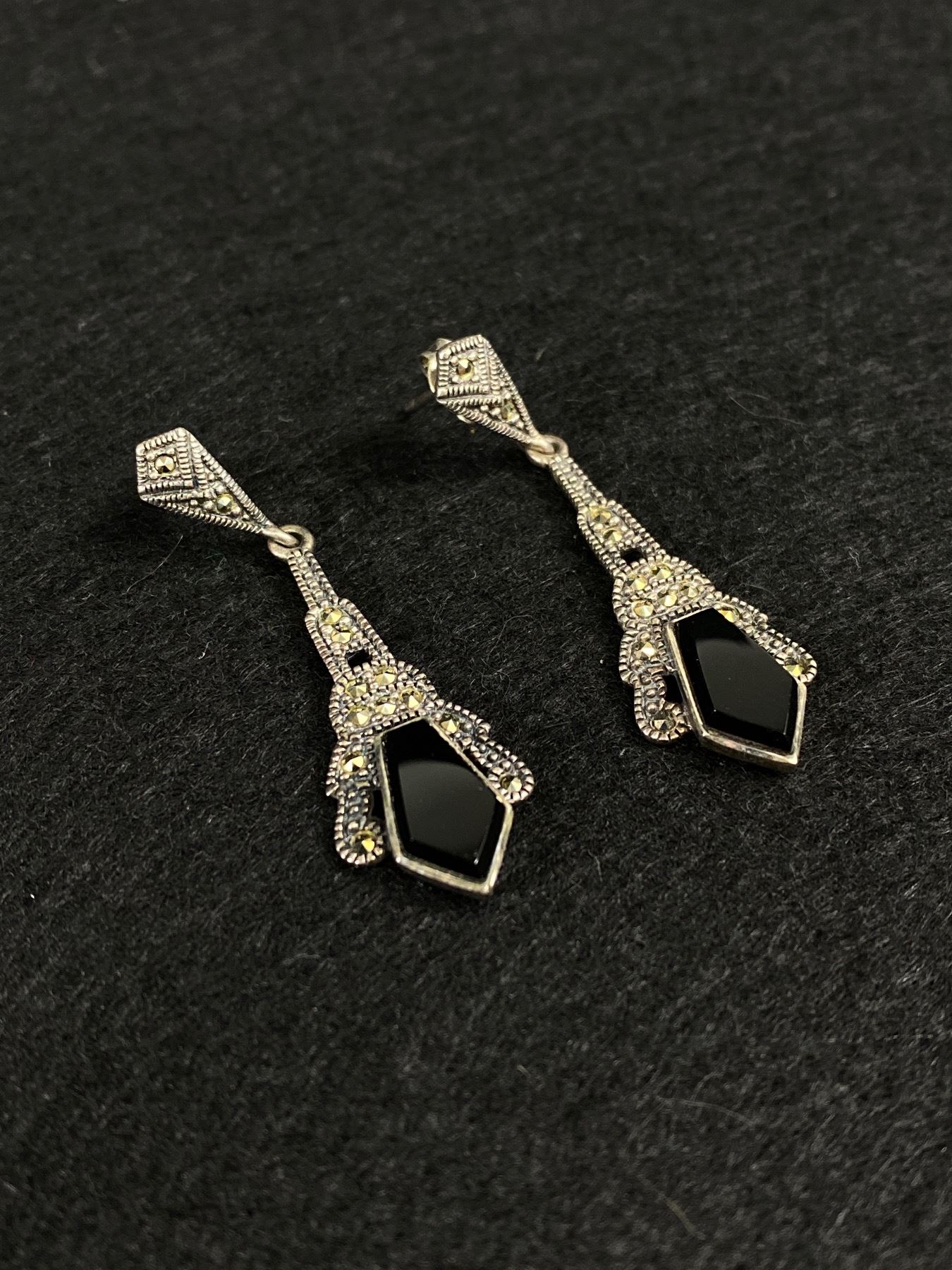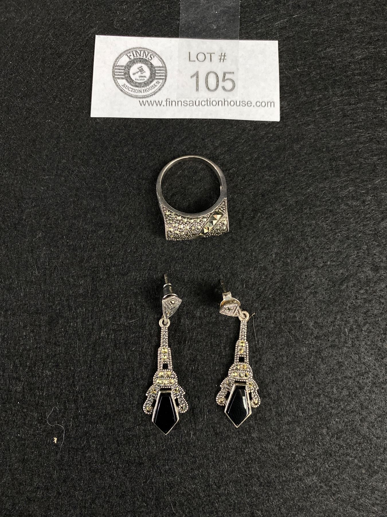 Vintage 925 Sterling Silver w/Black Onyx & Makesite Stones Pair Of Earrings & Ring