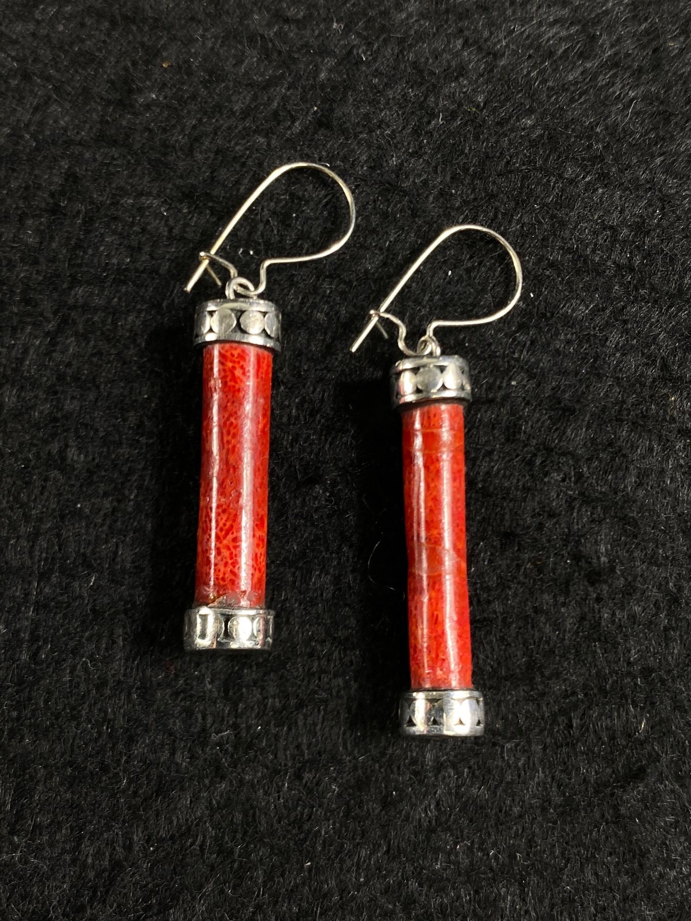 Vintage 925 Sterling Silver w/ Red Coral Earrings