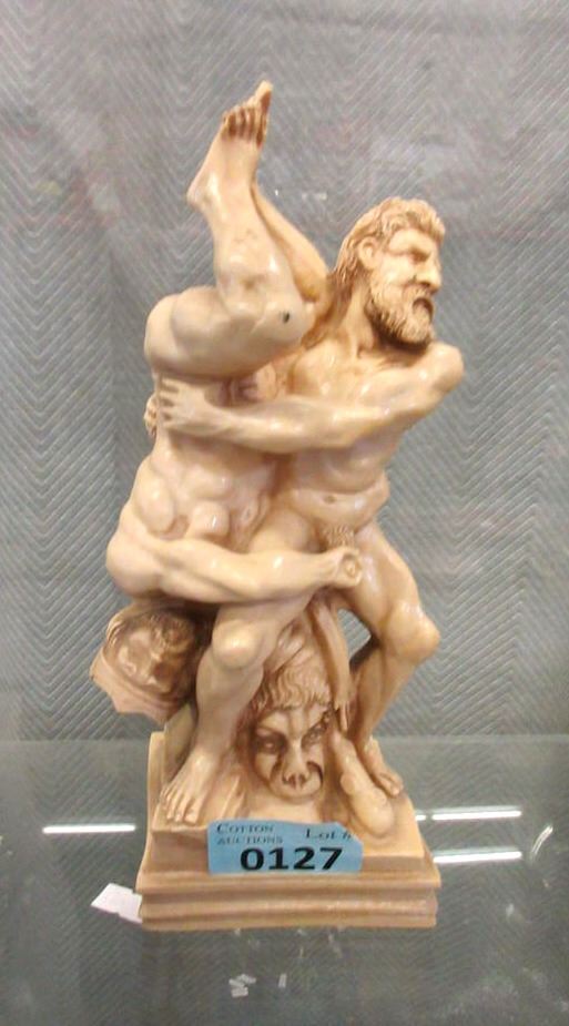 Hercules (Herakles) fighting with Diomedes. 11" tall on a 4" x 4" base.
