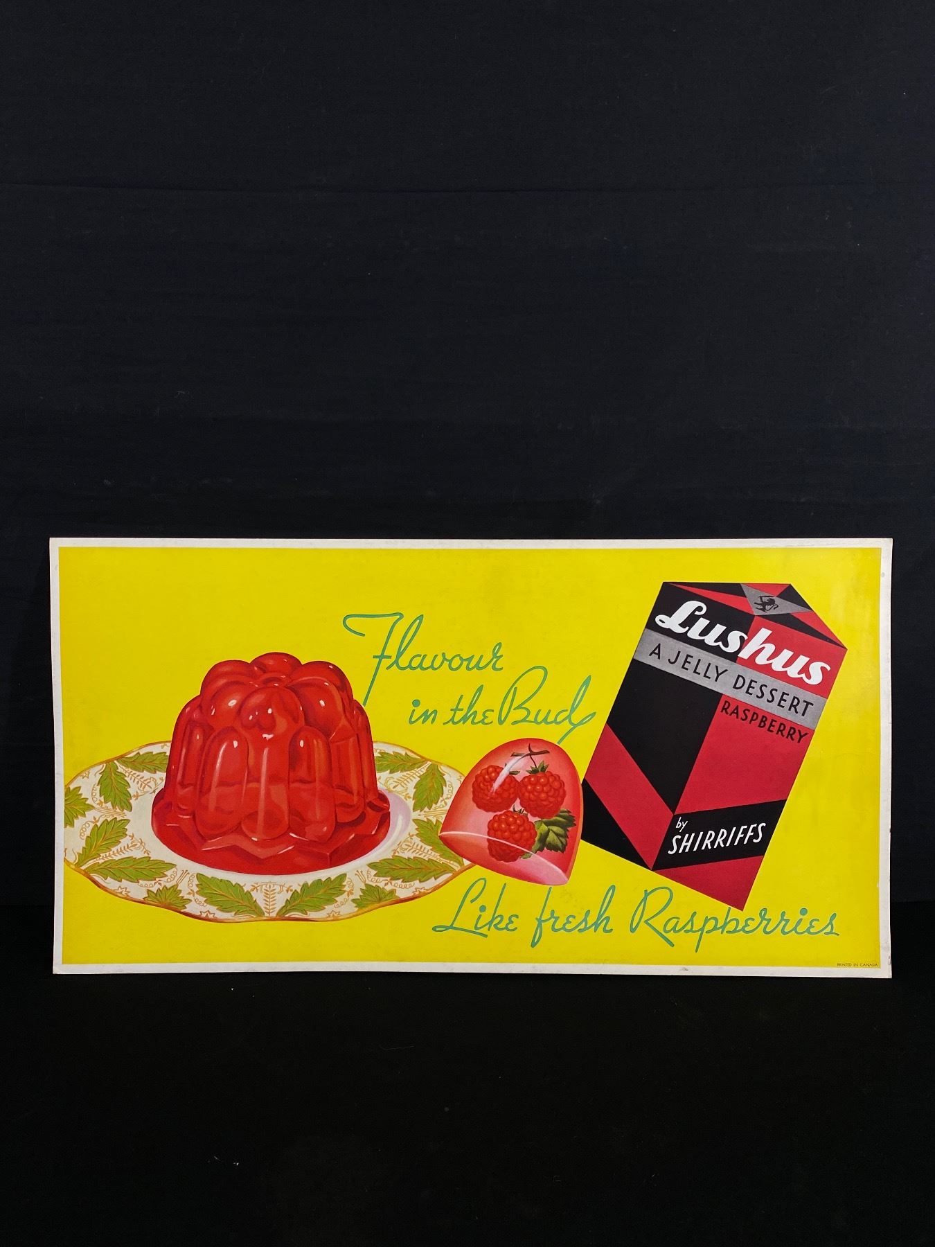 Vintage Advertising Card - Sherriffs Lushus Raspberry Jelly Dessert. Approx. 11" x 21"