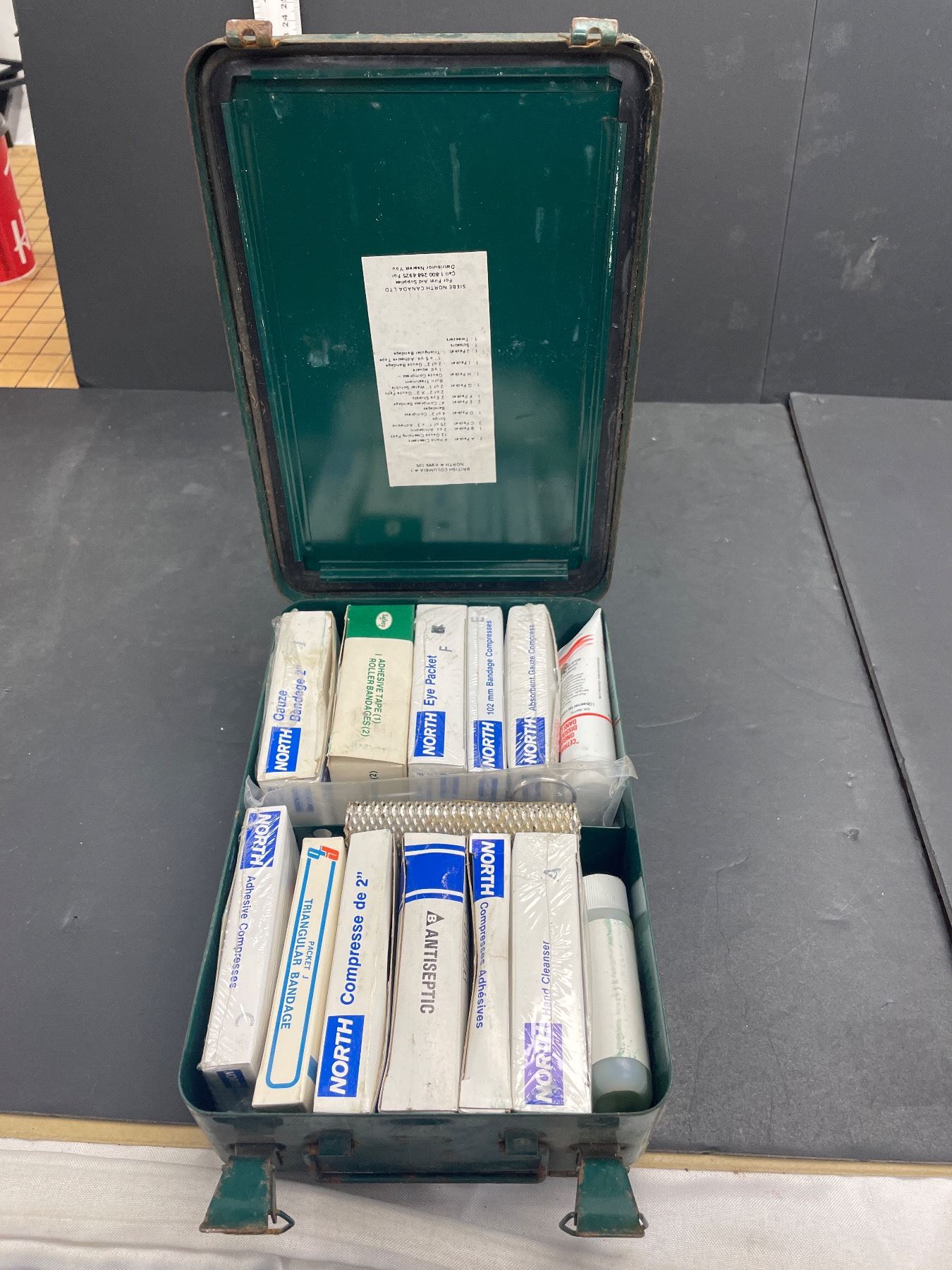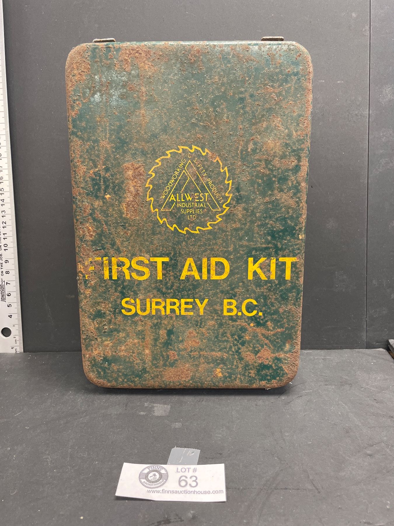 Vintage All West Industrial Supplies Metal First Aid Kit Surrey BC Full