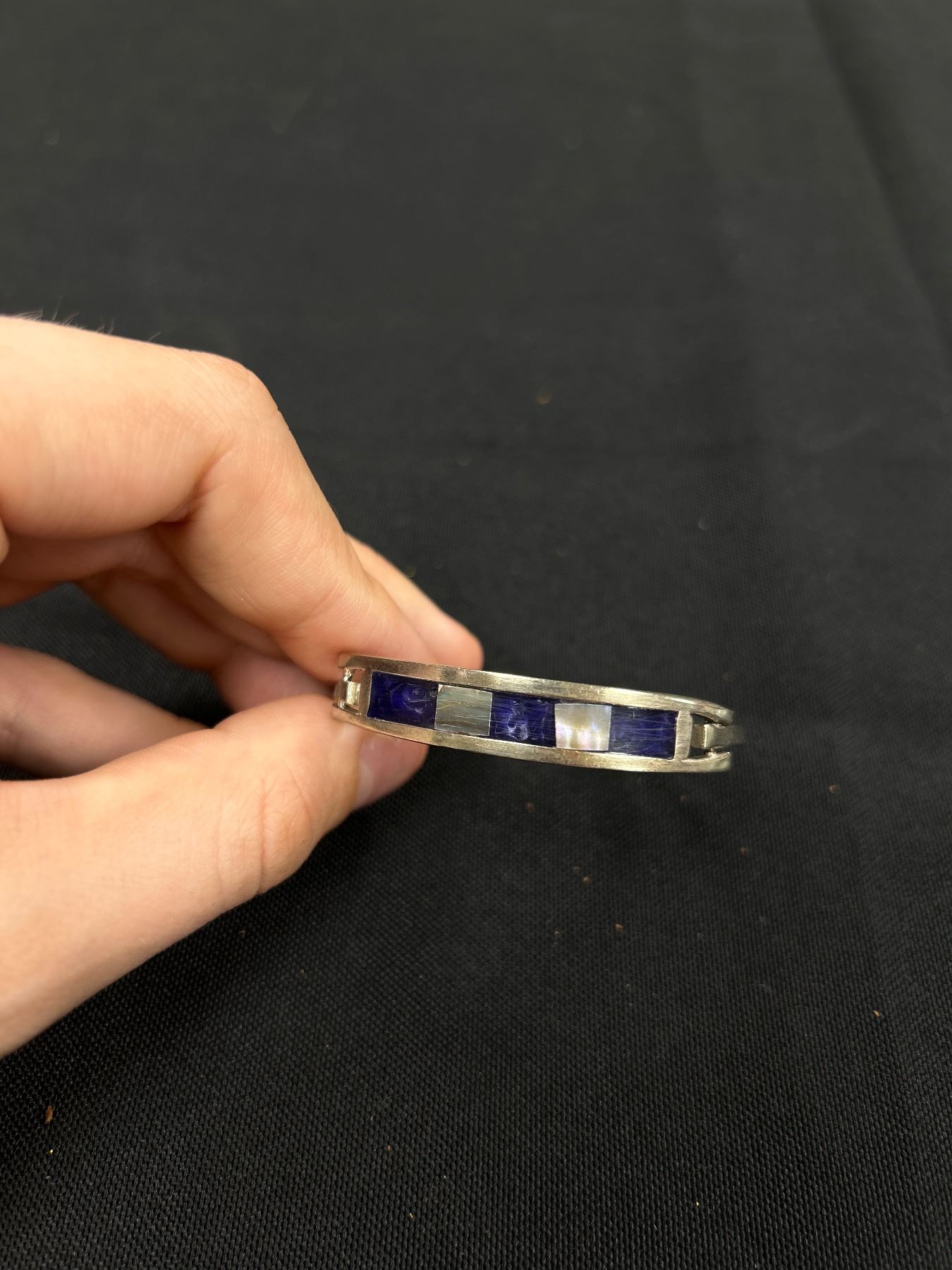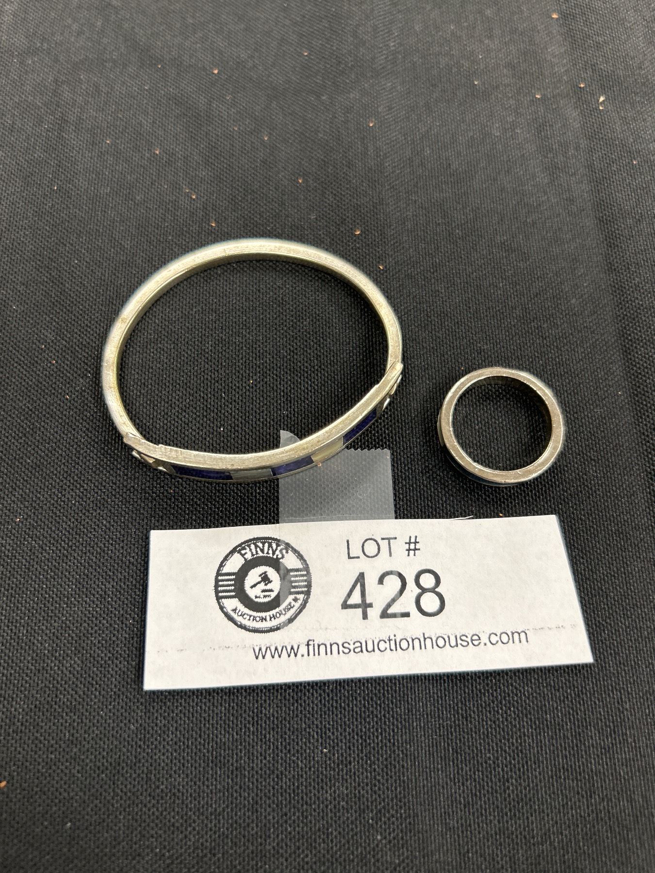 Vintage Alpaca Silver Bangle and Ring w/ Inlay. Bangle and Ring 13.89 Grams