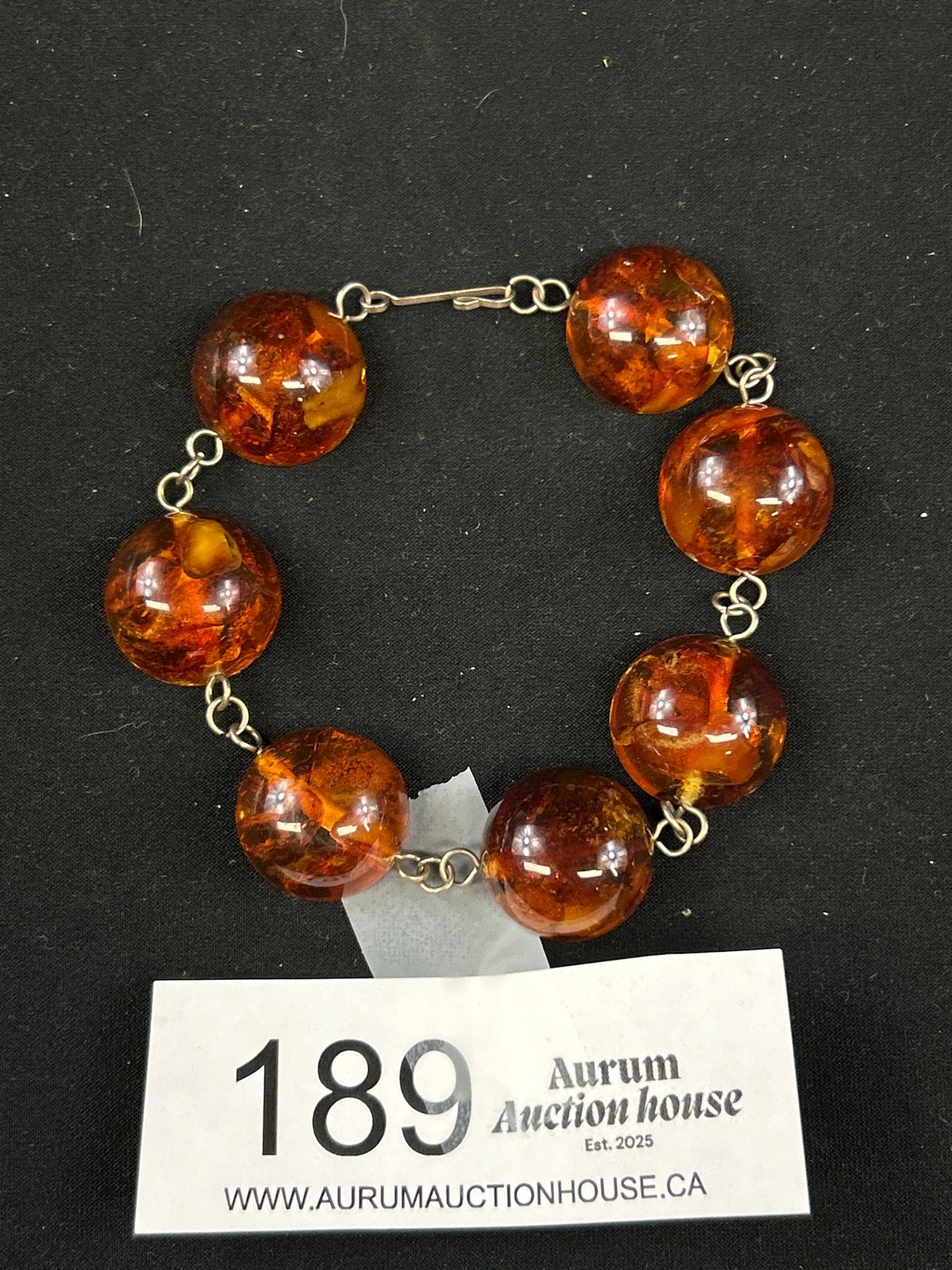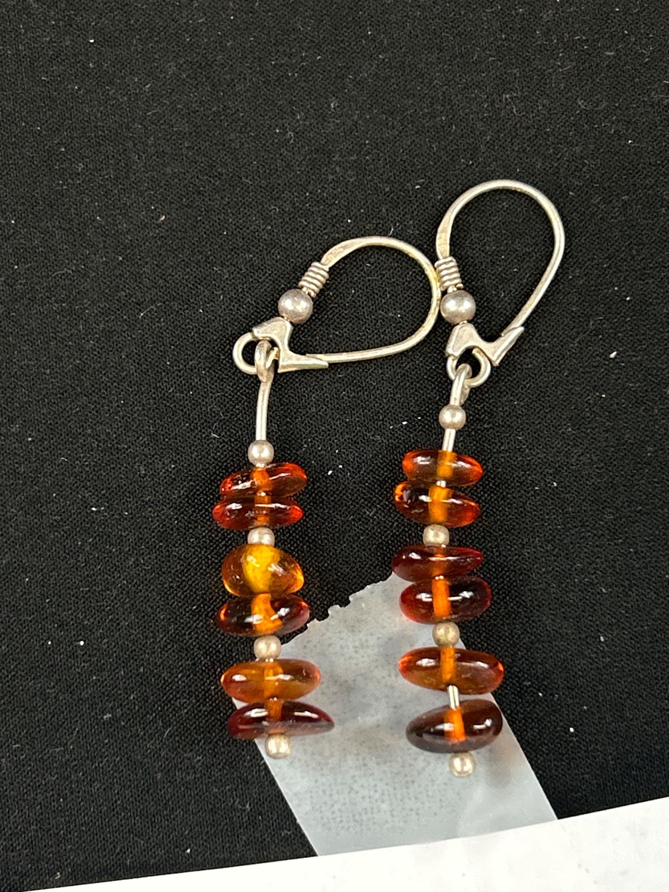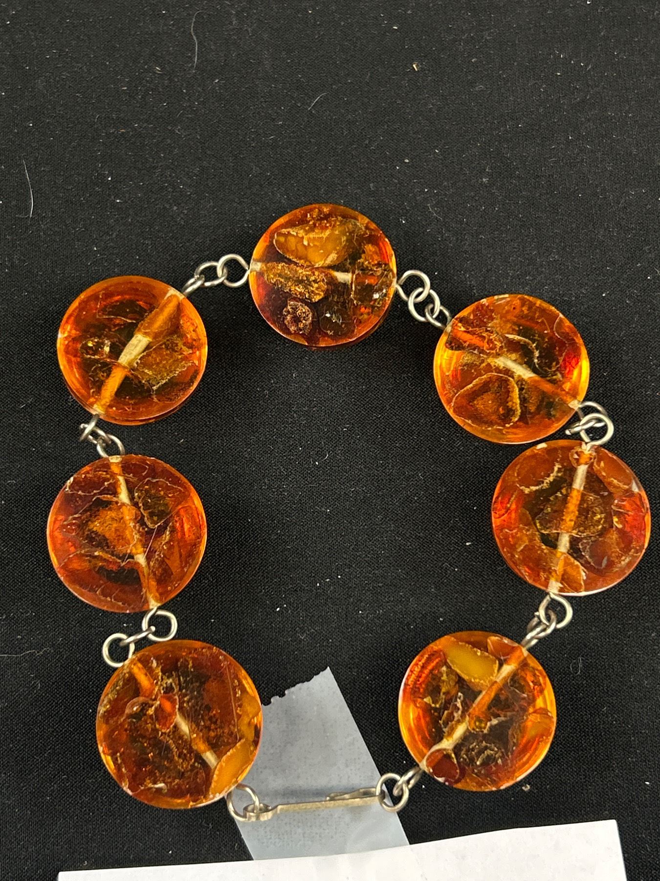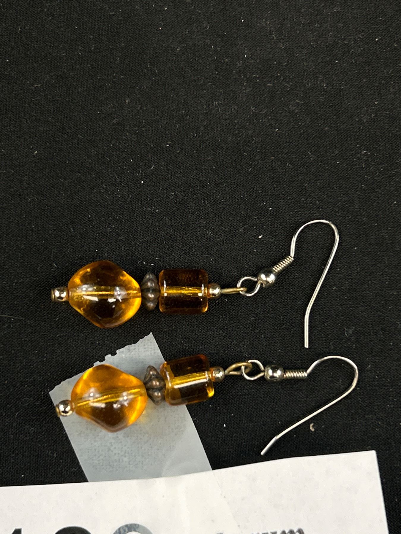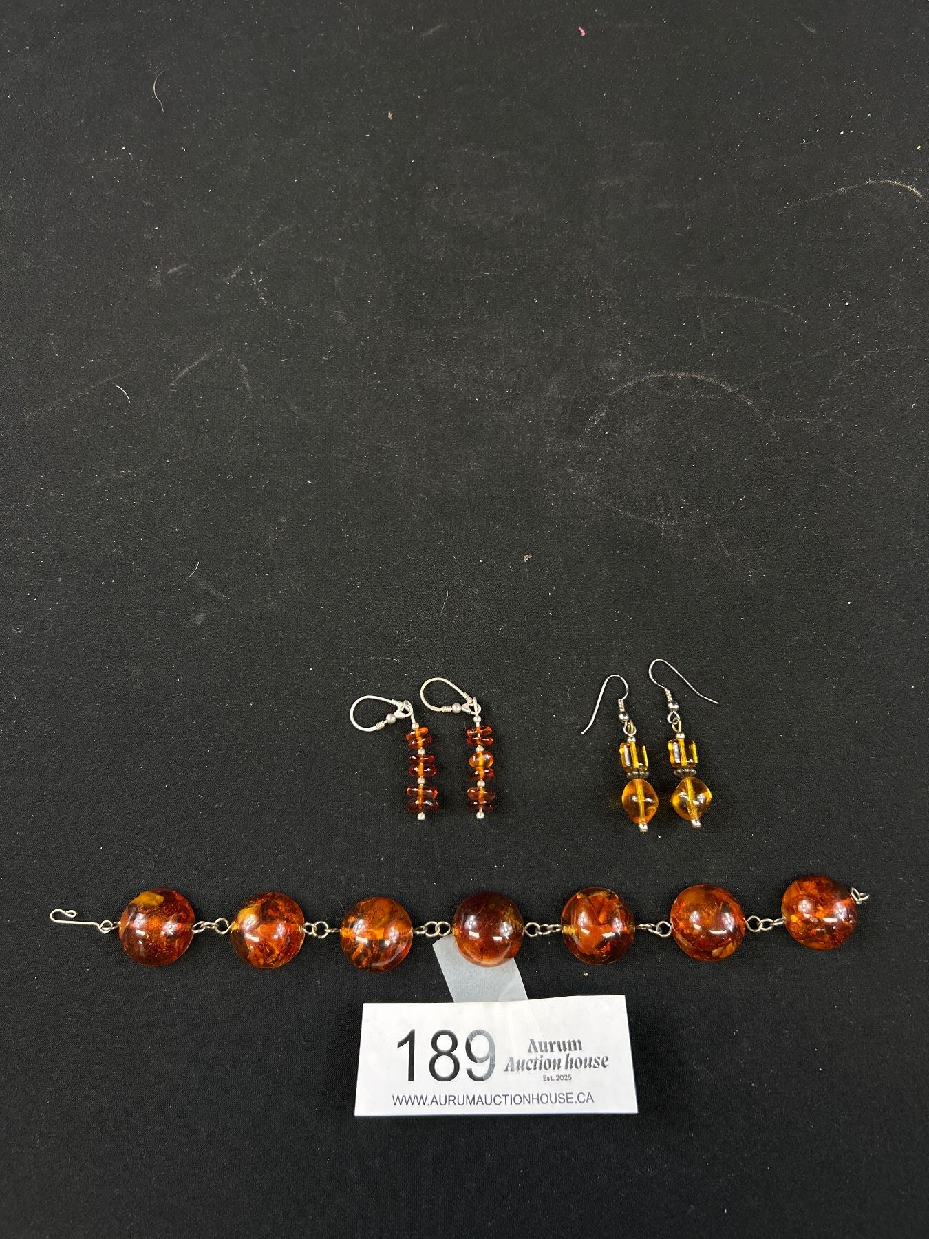 Vintage Amber Stone Bracelet and 2 Pairs of Earrings