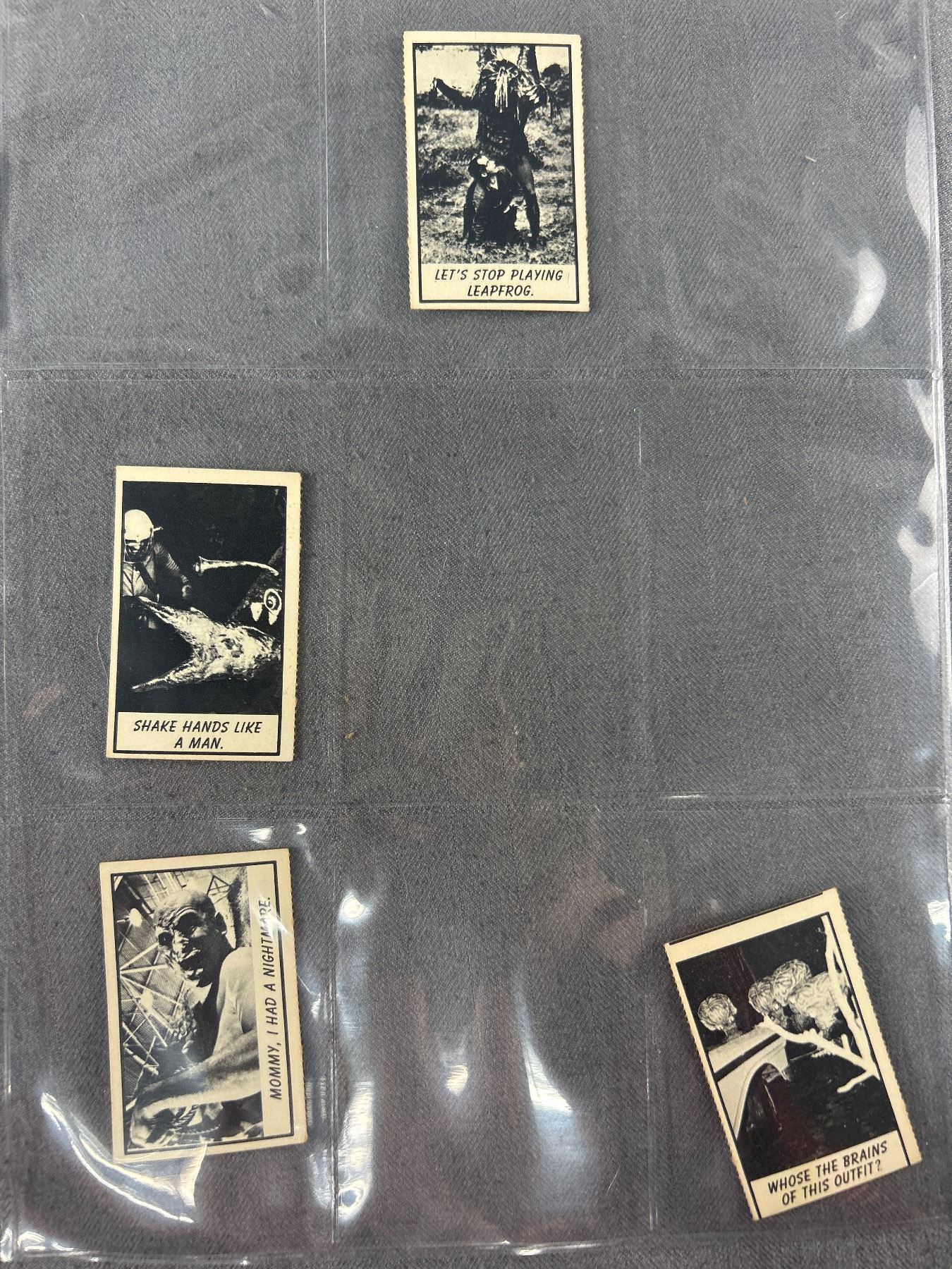 Vintage American International Pictures Inc. "Monster Laffs" Mini Collector Cards In Binder Card Sheets