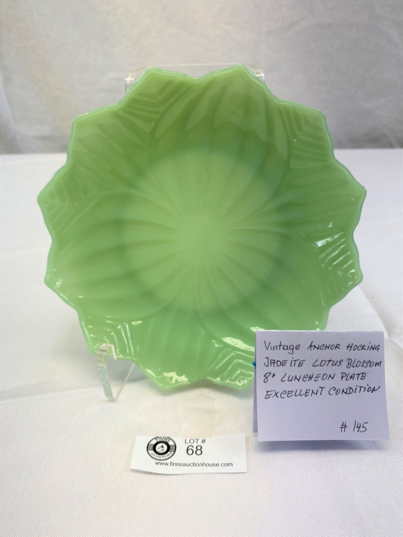 Vintage Anchor Hocking Jadeite Lotus Blossom 8" Luncheon Plate, Excellent Condition