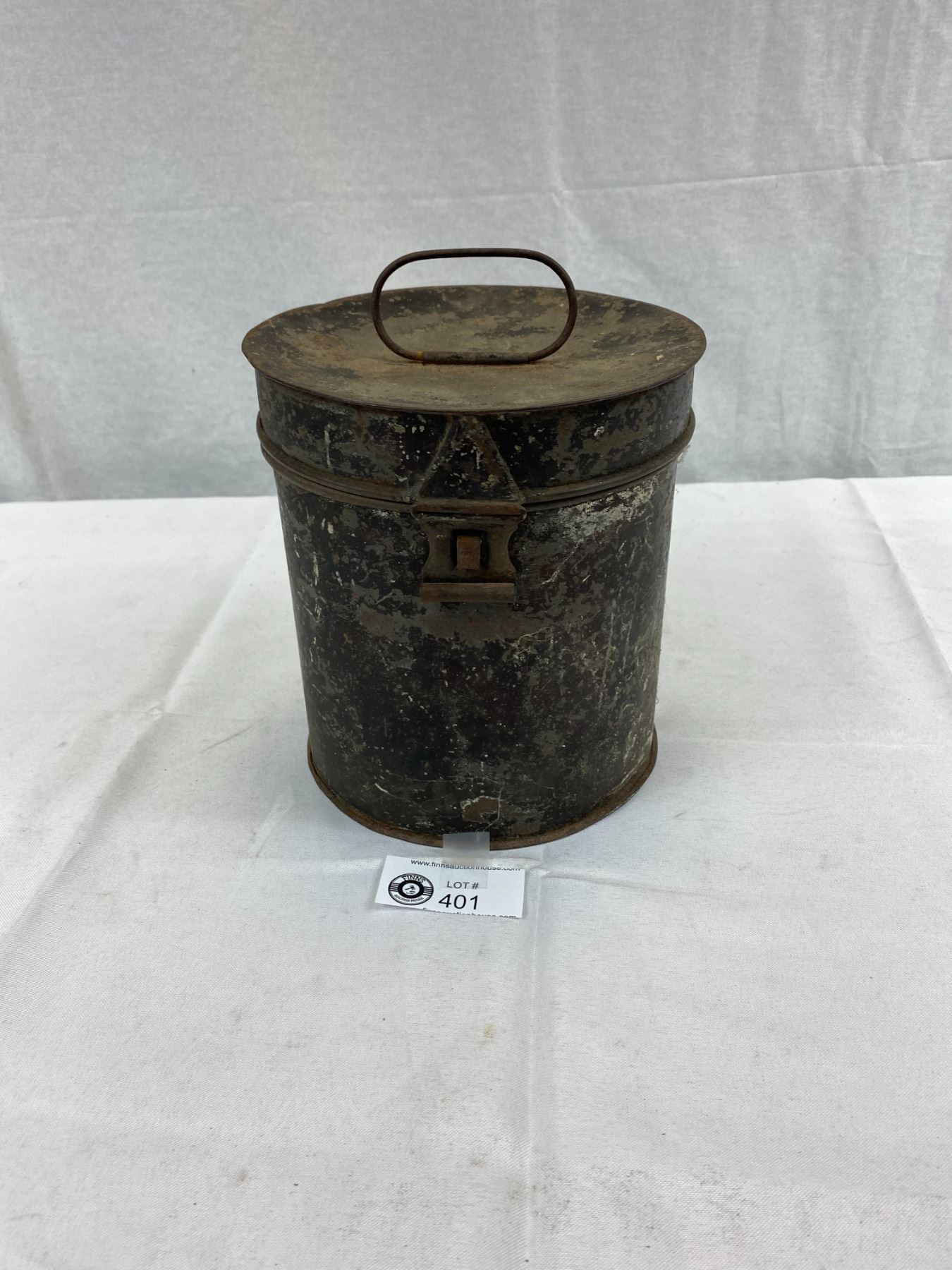Vintage Antique Metal Round Storage Container/Lunch Box, Military?