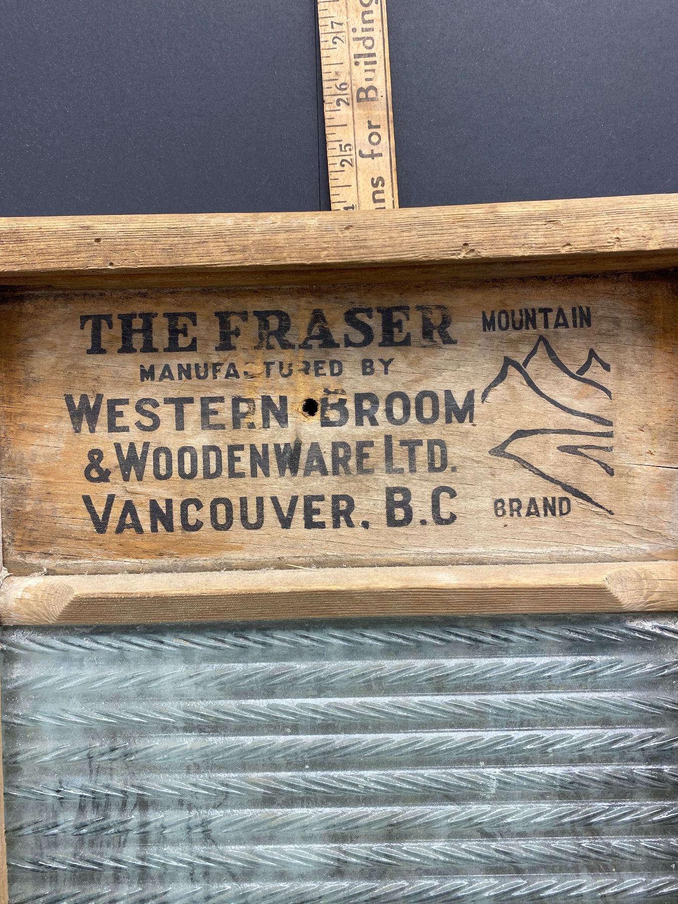Vintage Antique Wooden and Glass Washboard "The Fraser Mountain" Manufactured by Western Broom and Woodenware Vancouver BC