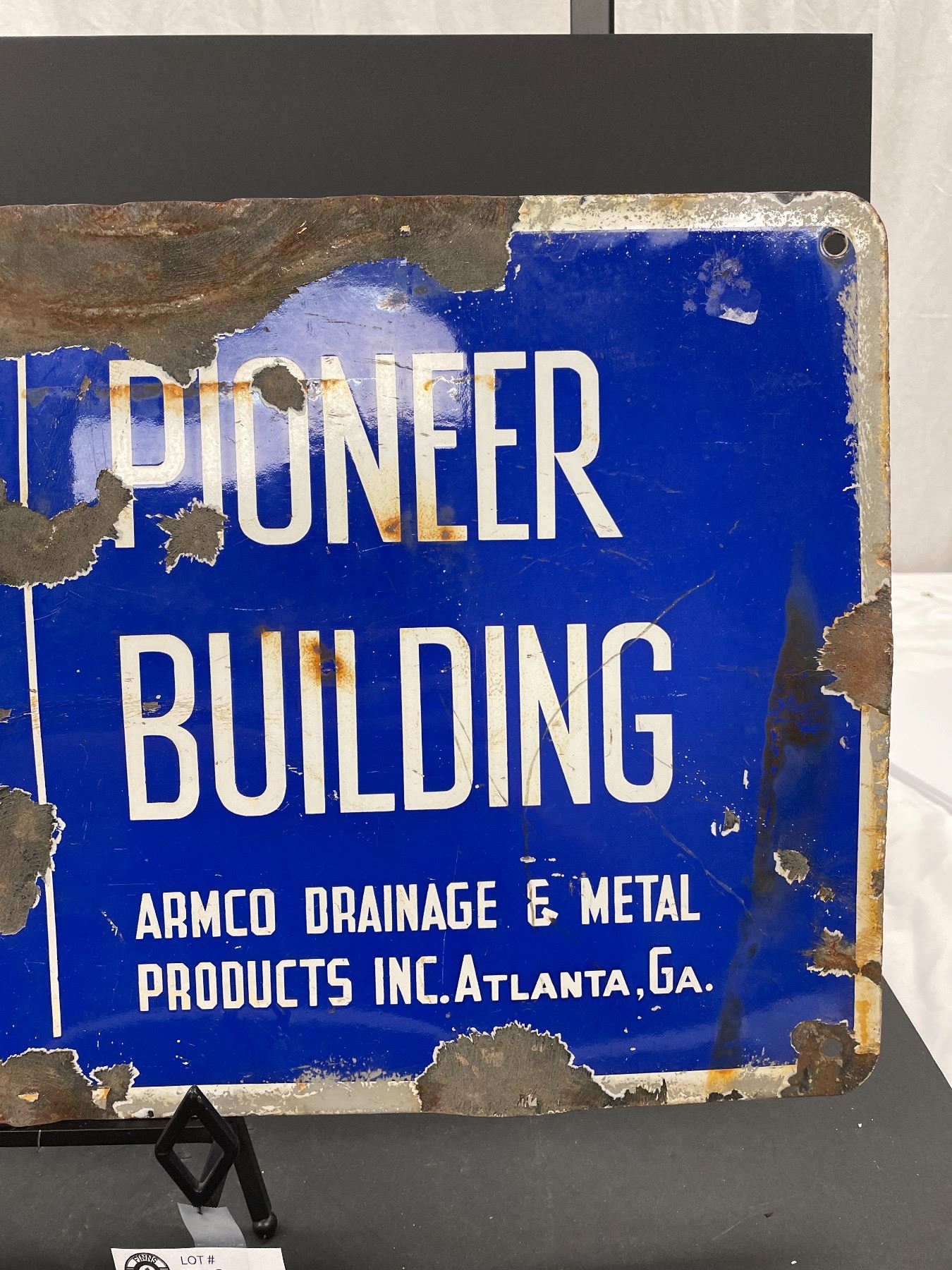 Vintage Armco Pioneer Building Porcelain Sign 25 x 13.5"