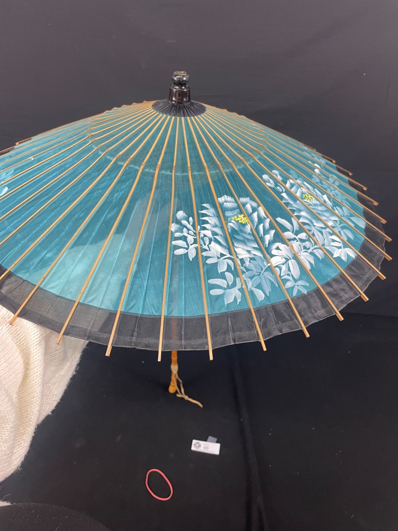 Vintage Asian Hand Painted Silk Umbrella 30"