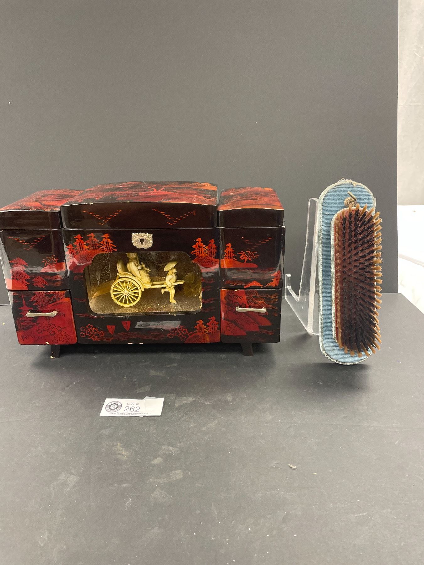 Vintage Asian Musical Jewellery Box with Antique Brush and Wall Hanger