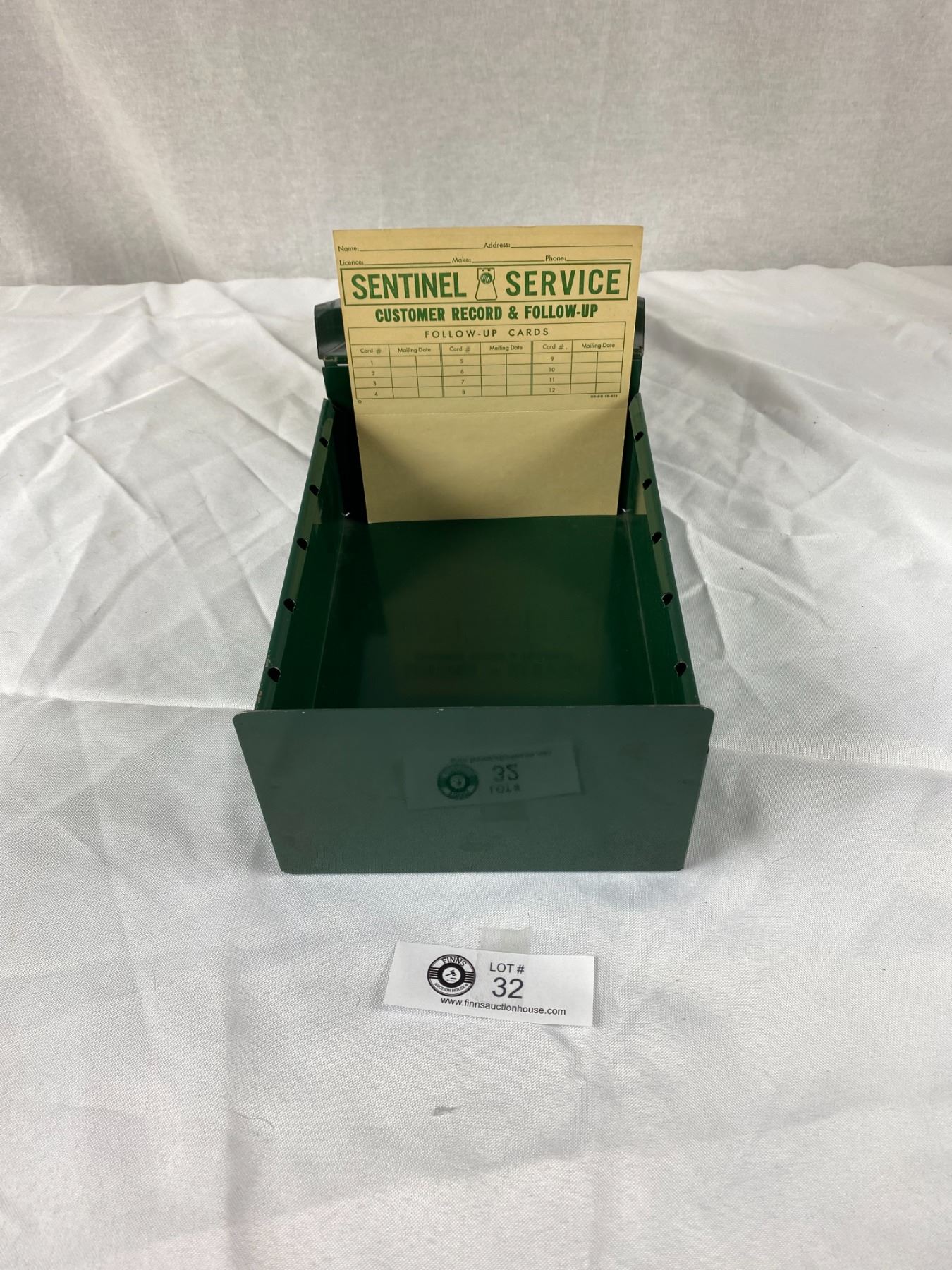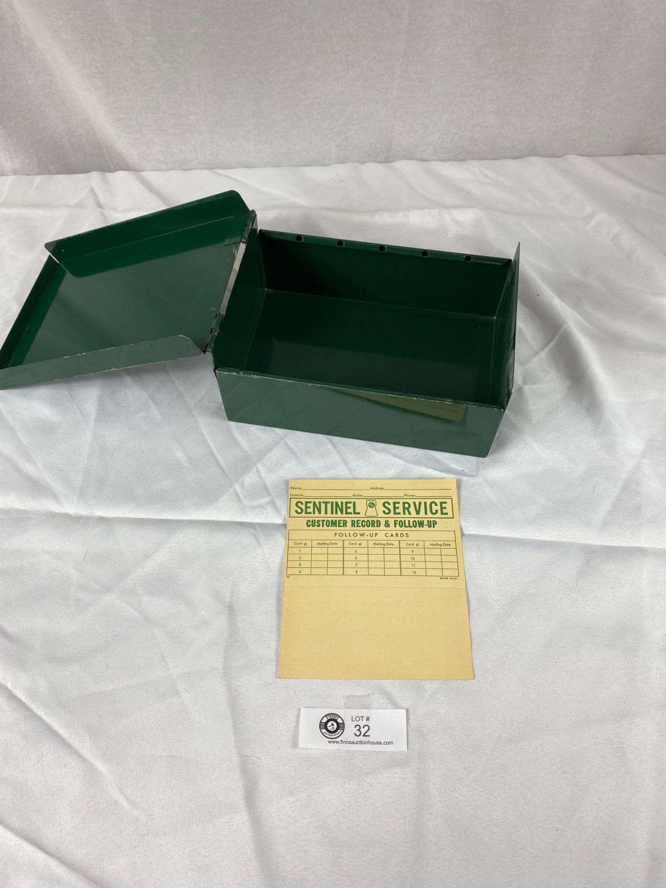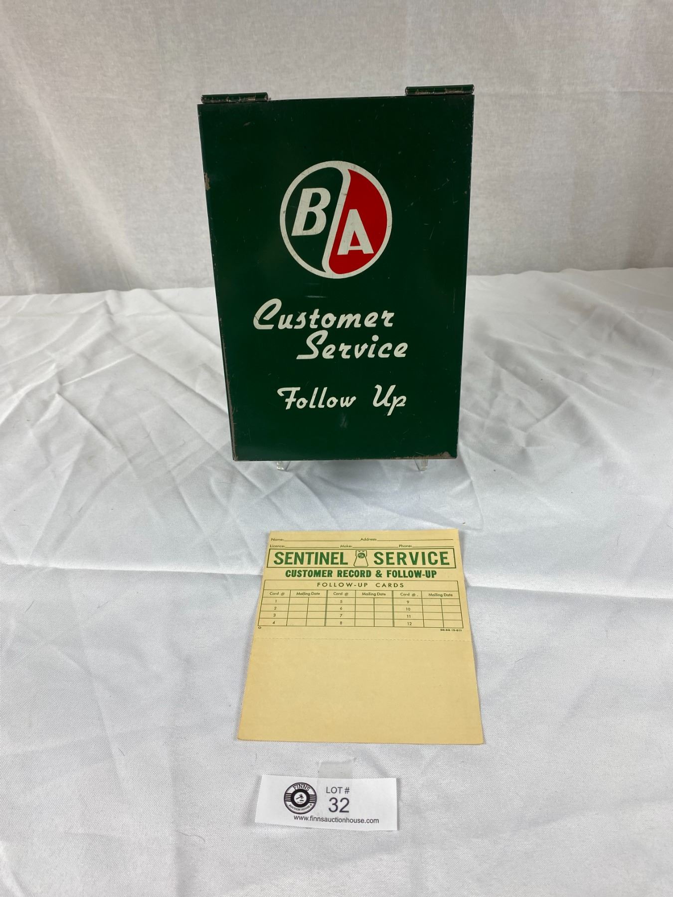 Vintage BA Customers Service follow up metal box with Service Card inside 6 1/2"x9"x4"