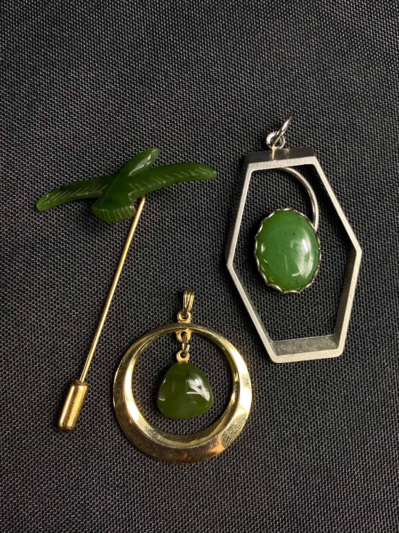 Vintage BC Jade Stickpin + 2 B.C. Jade Patts