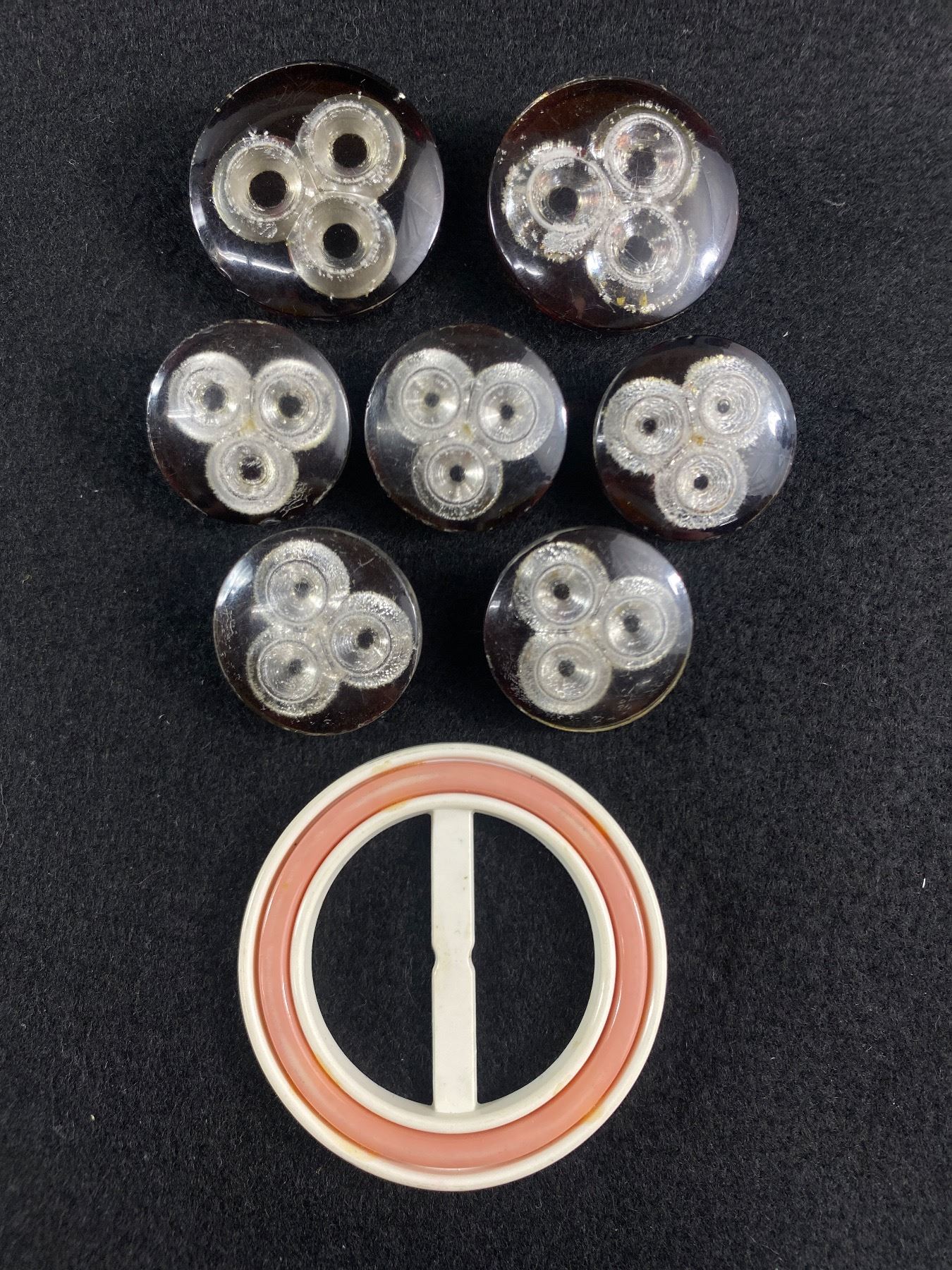 Vintage Bakelite Belt Buckle and Unique Encase Lucite Buttons