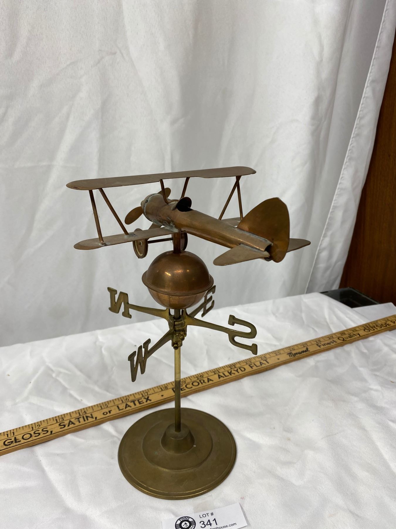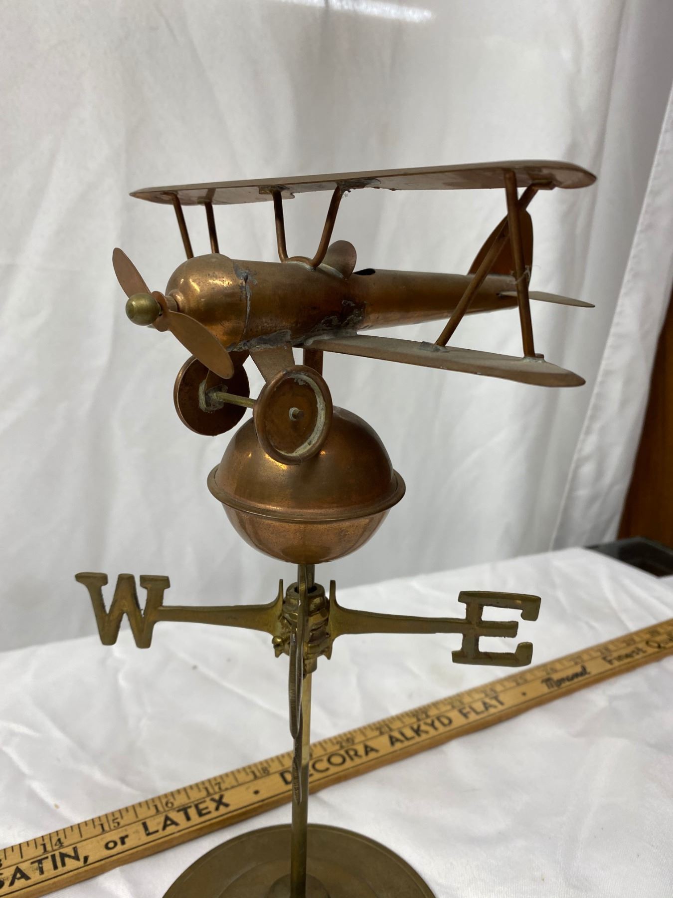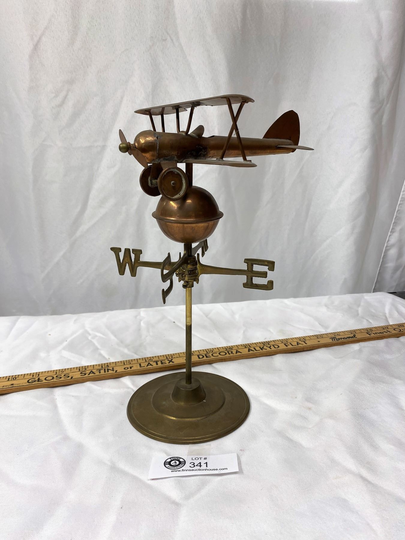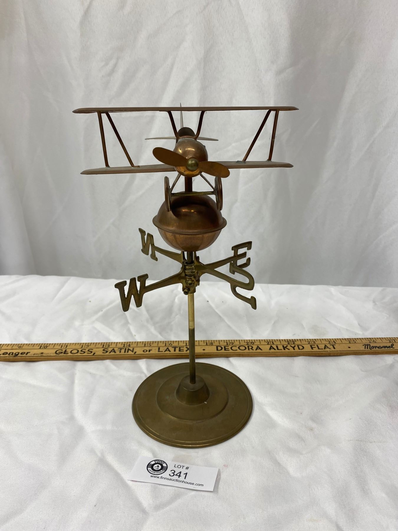 Vintage Bass and Copper Tabletop Airplane Weather Vane.