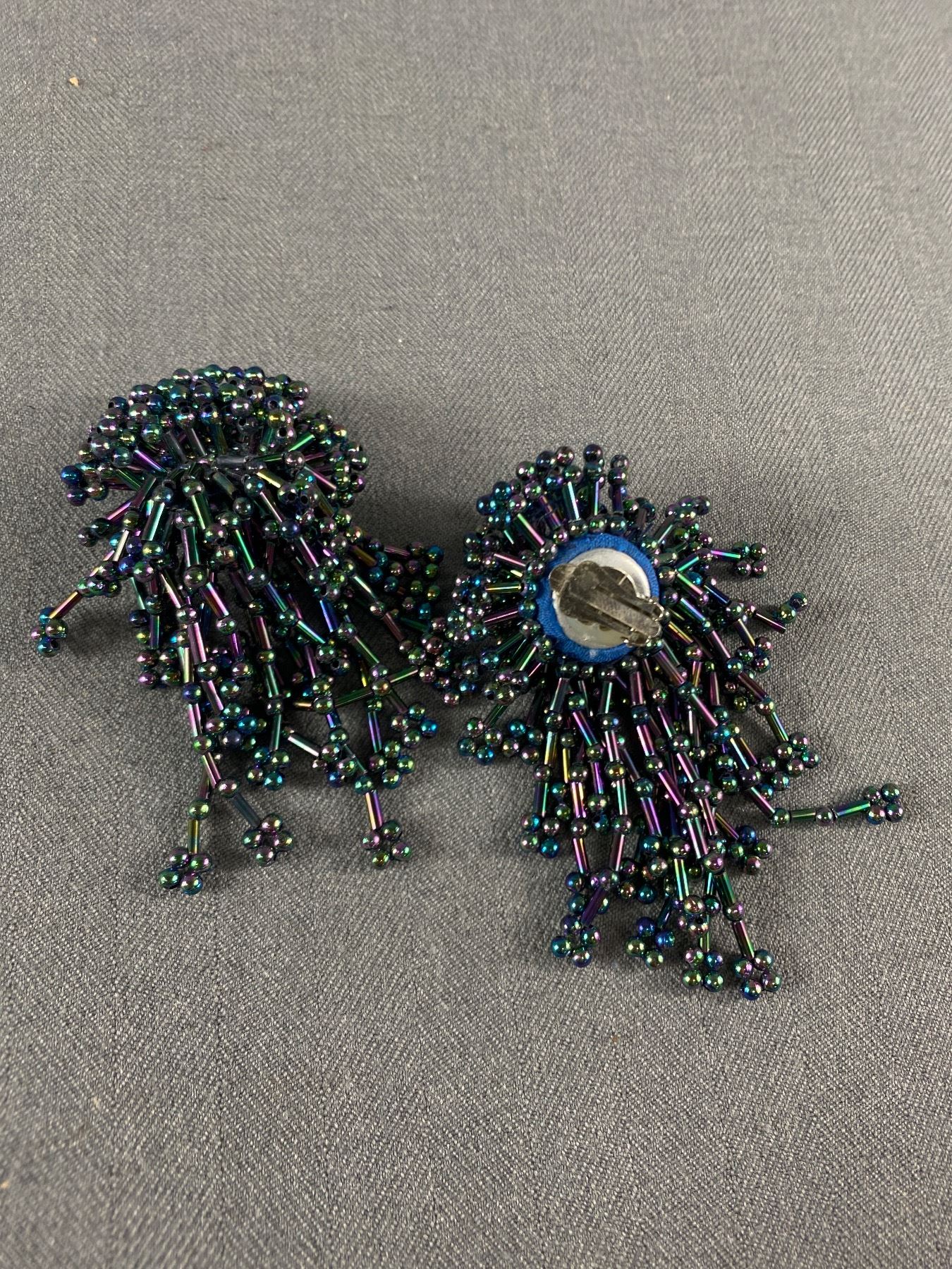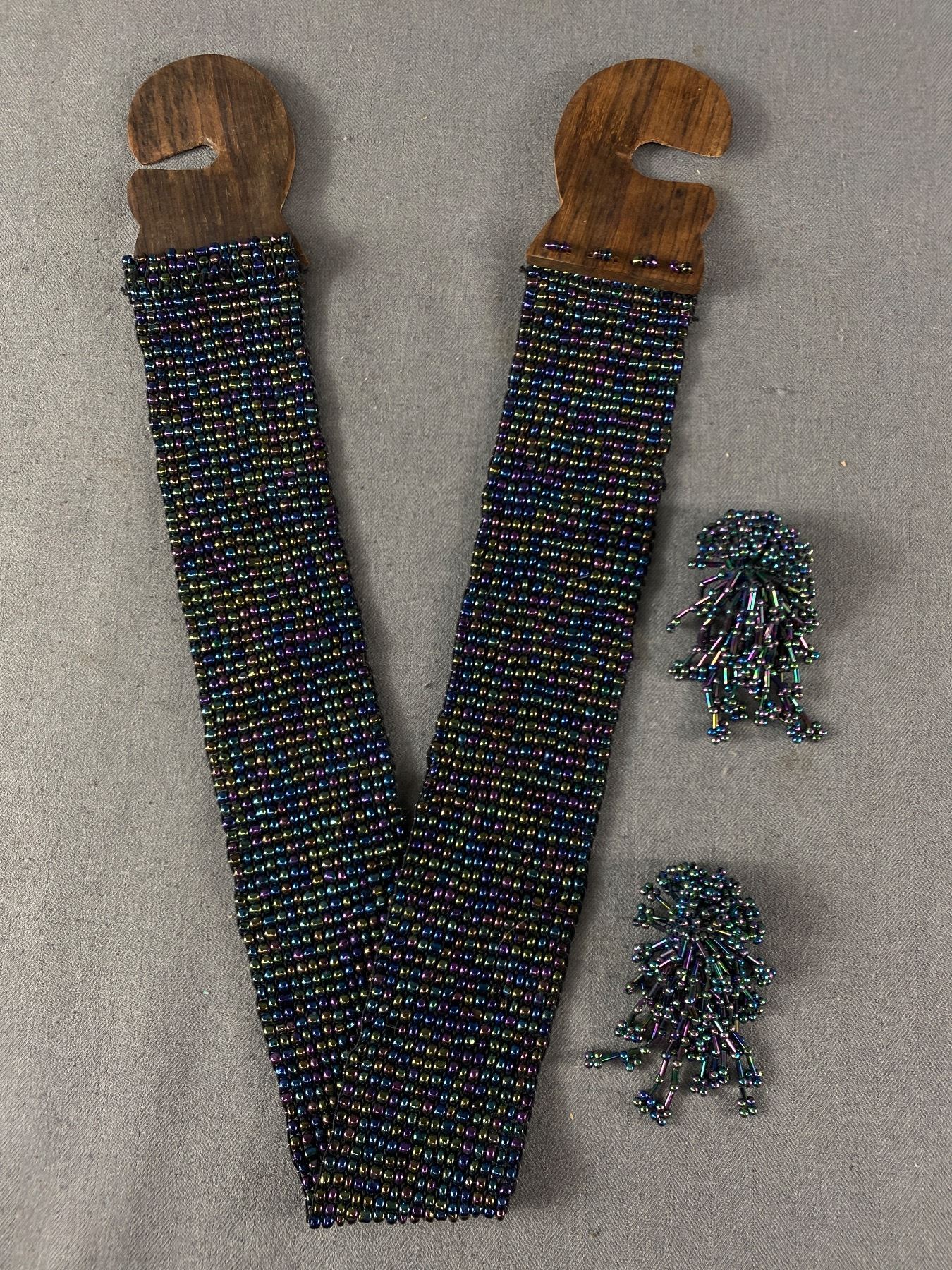 Vintage Beaded Cinch w/ Wood Closure & Matching Beaded Clip On Earrings