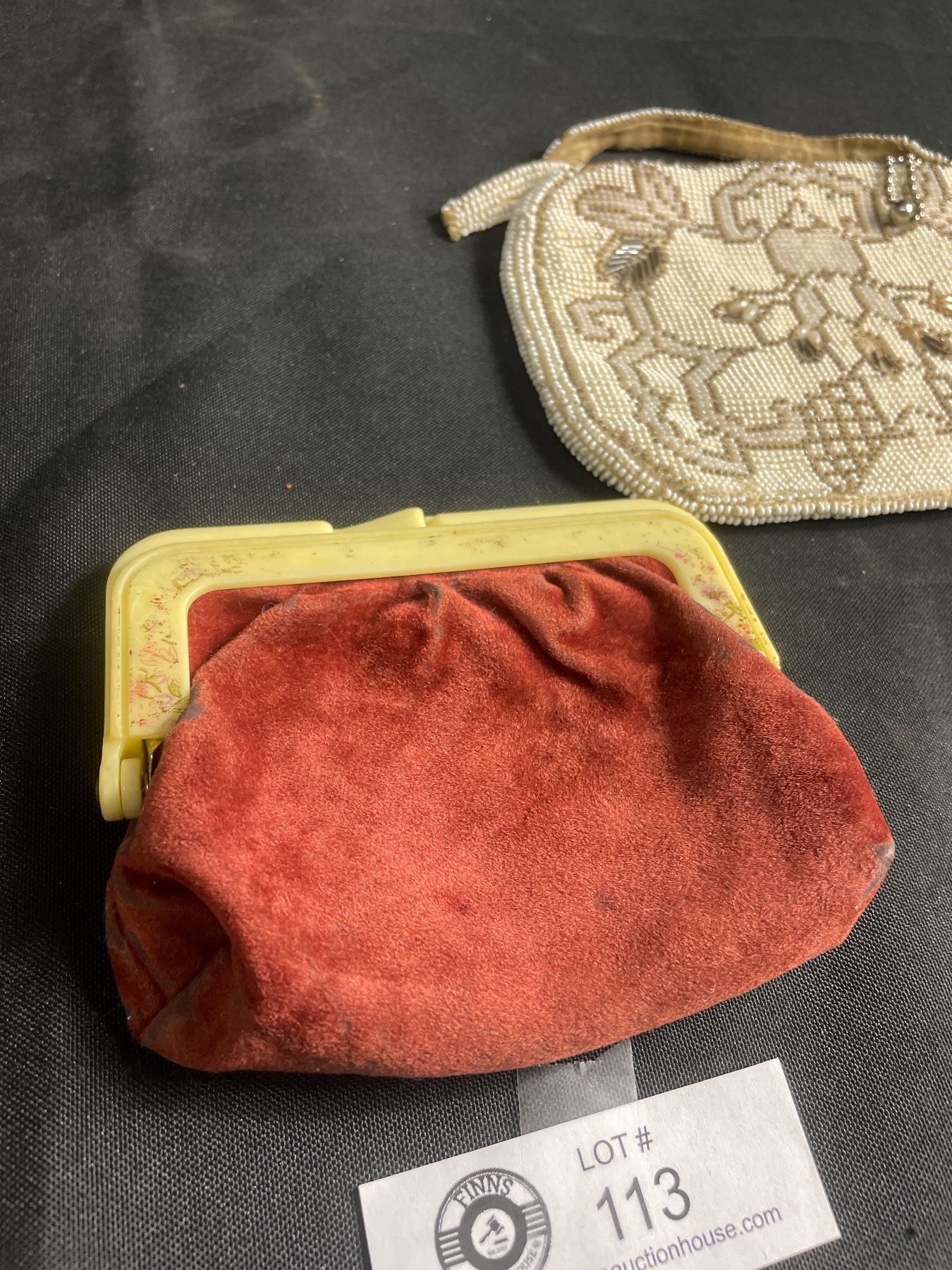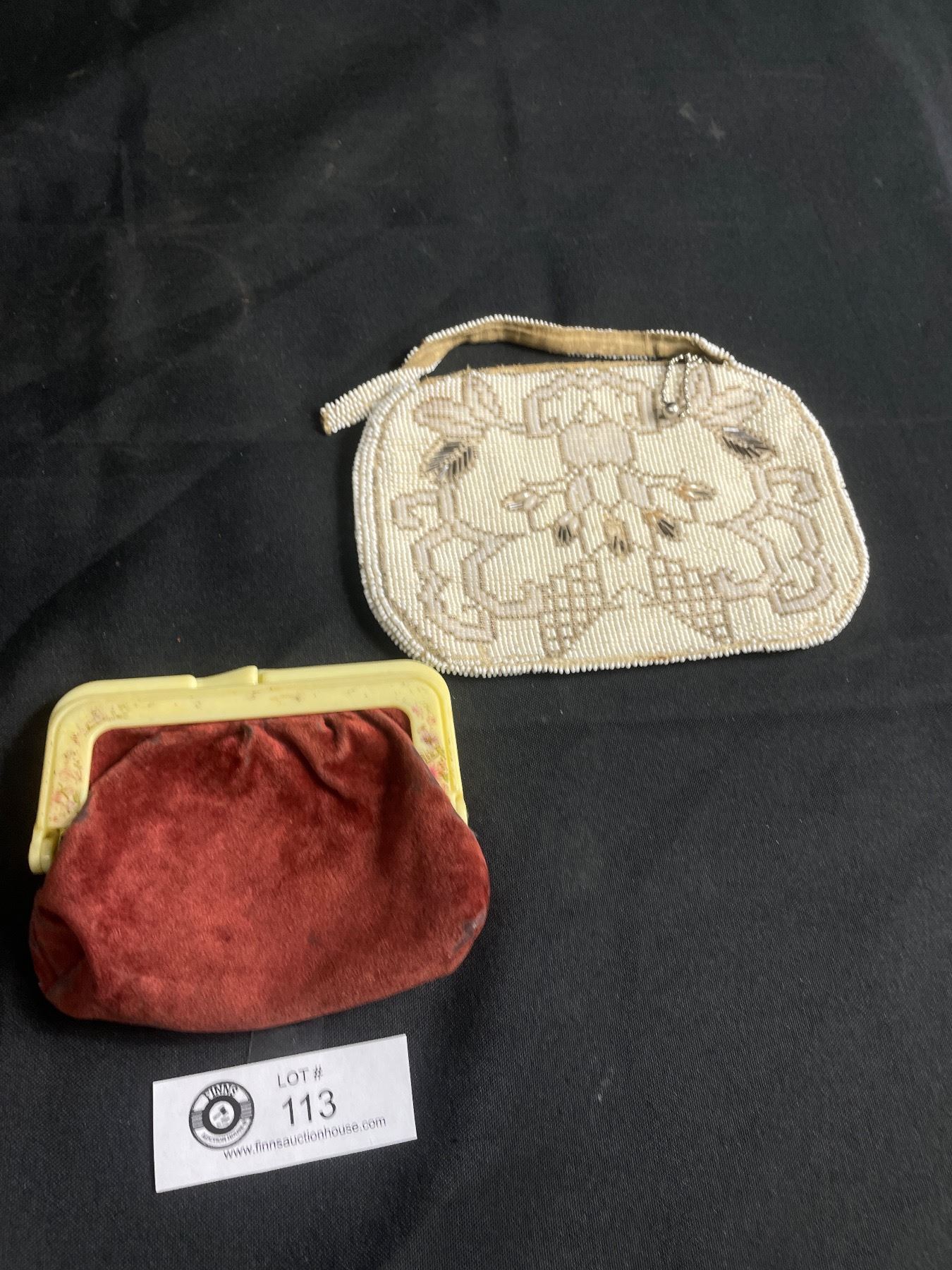 Vintage Beaded Purse Made in Czechoslovakia and Antique Velvet Coin Purse w/ Remnants of Hand Painting on Bakelite Frame - Both As Found