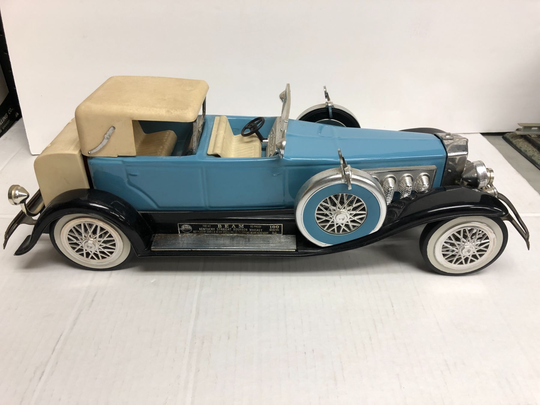 Vintage Beam Kentucky Bourbon Whiskey collectible decanter Antique Blue Automobile (seal intact)