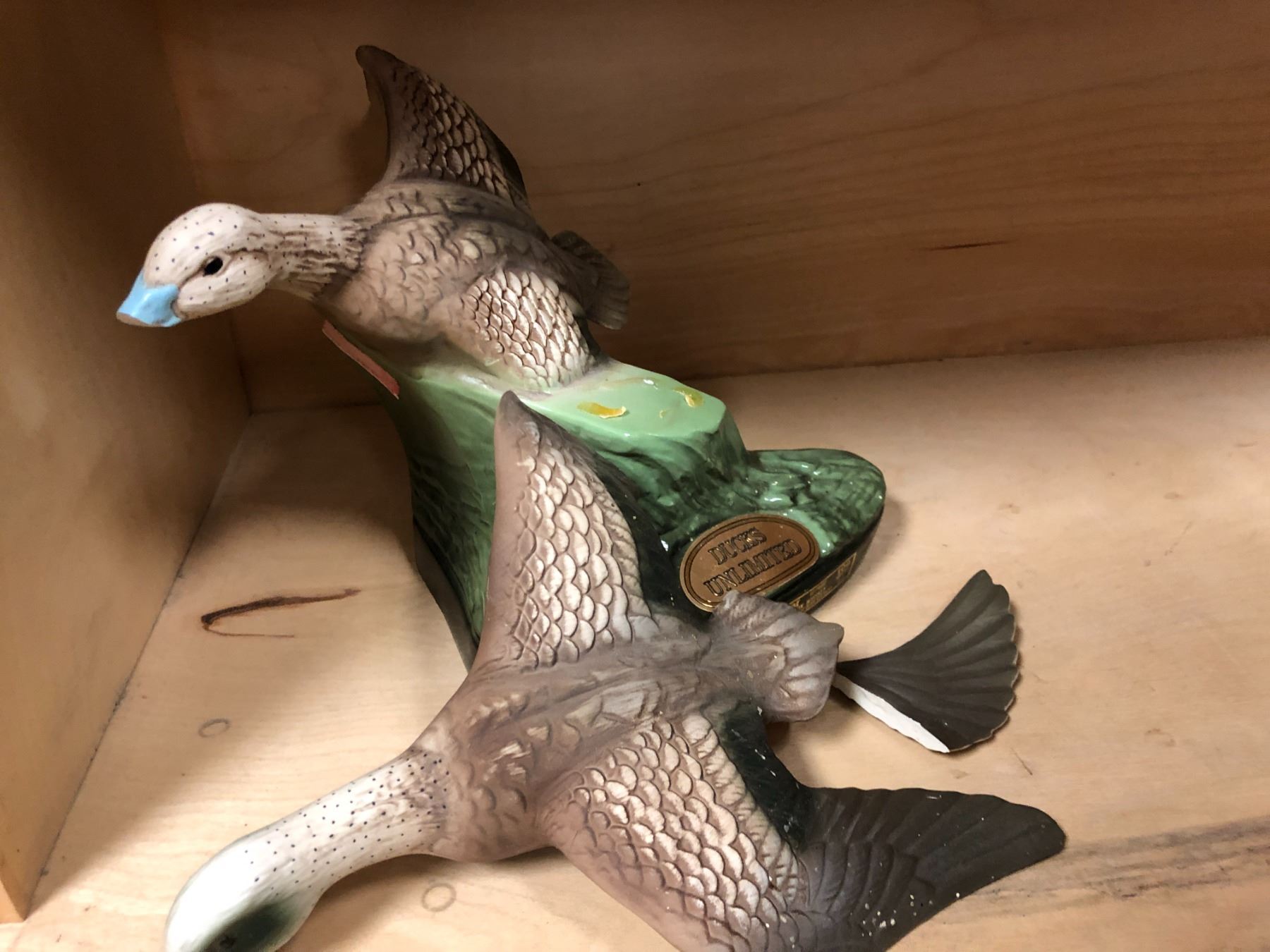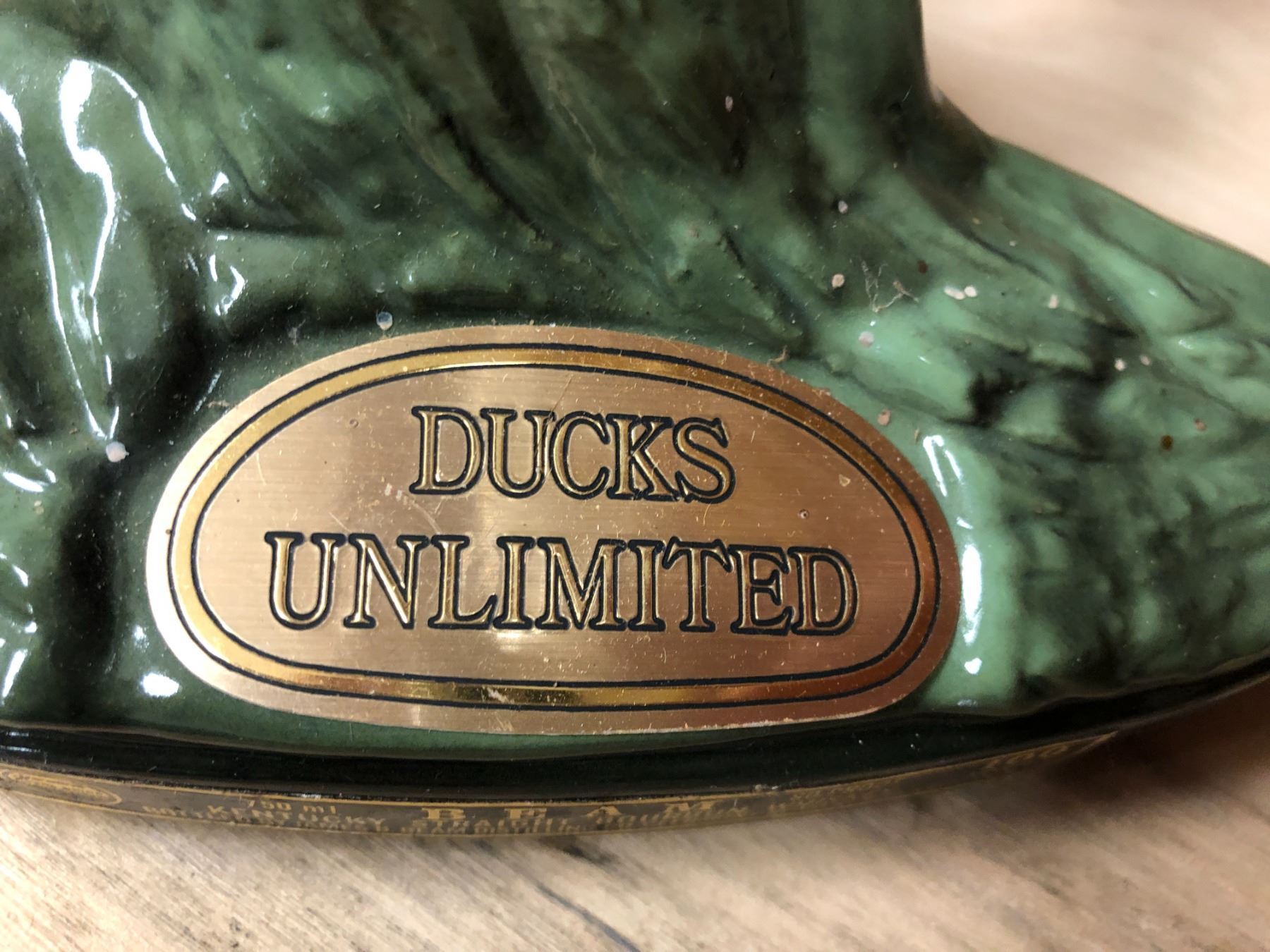 Vintage Beam Kentucky Bourbon Whiskey collectible porcelain decanter Ducks Unlimited (seal intact, one duck broken wing needs gluing)
