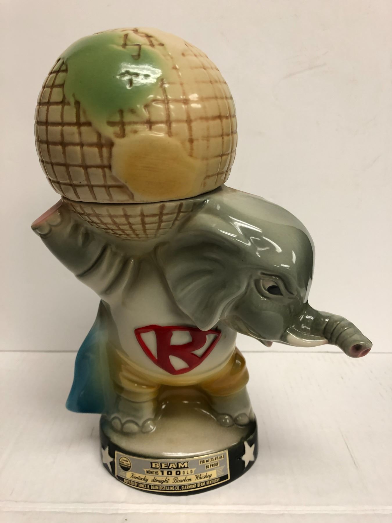 Vintage Beam collectible porcelain decanter Kentucky Bourbon Whiskey Republican Elephant (bottle ful